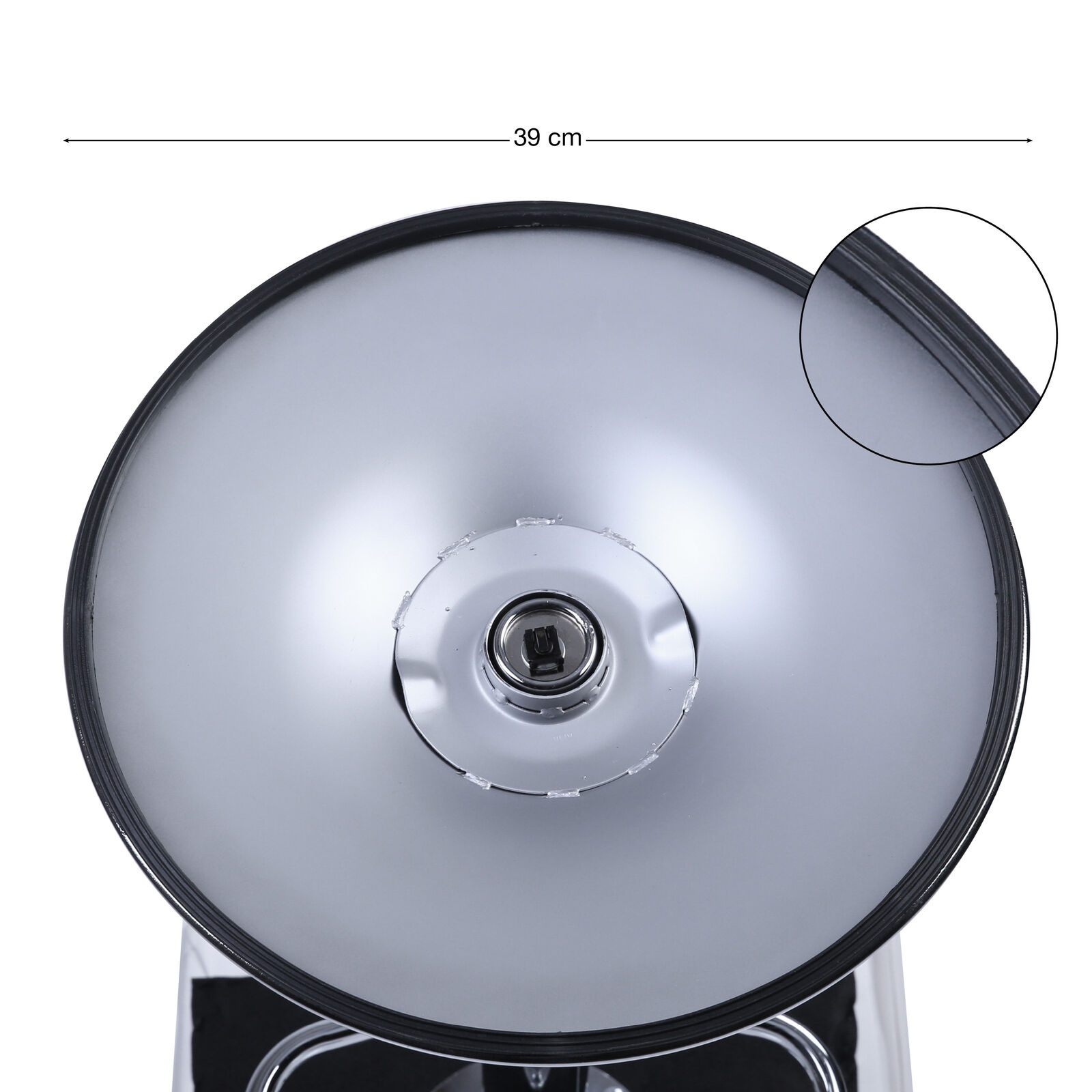 Židle má praktickou opěrku na nohy z pochromovaného kovu. Kruhová podnož a centrální noha jsou z chromu v lesku.