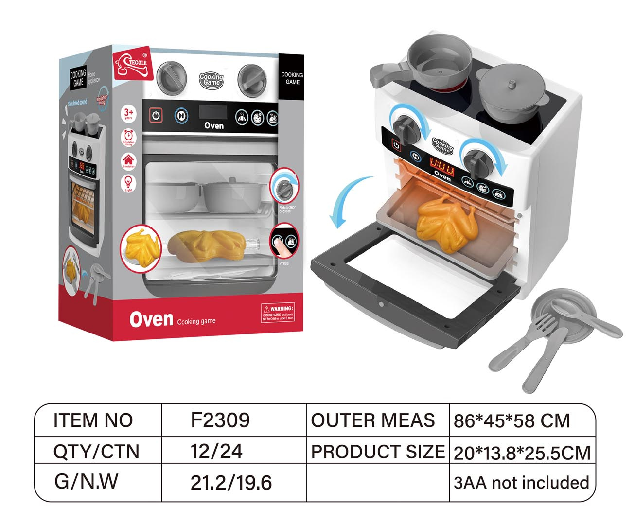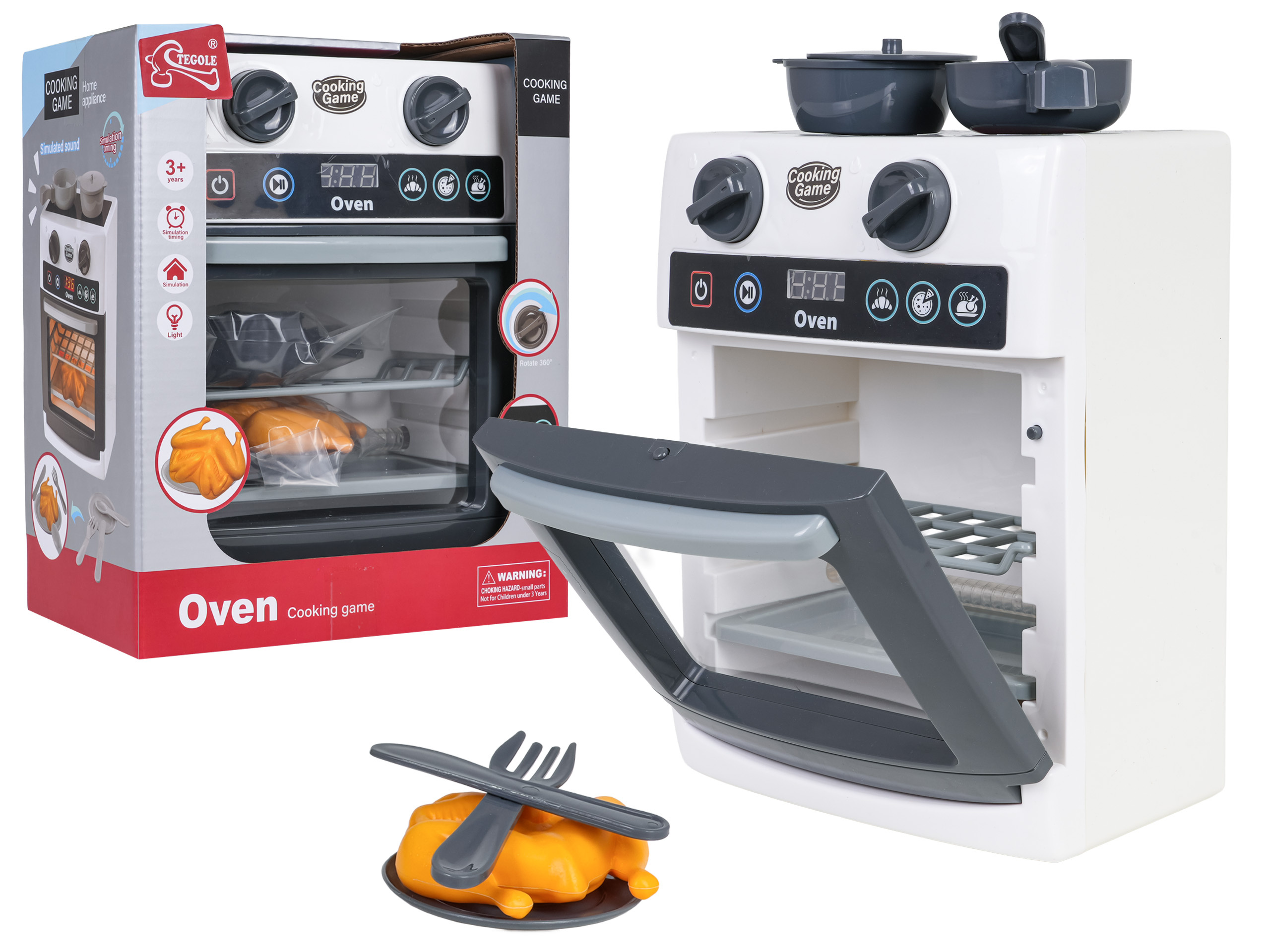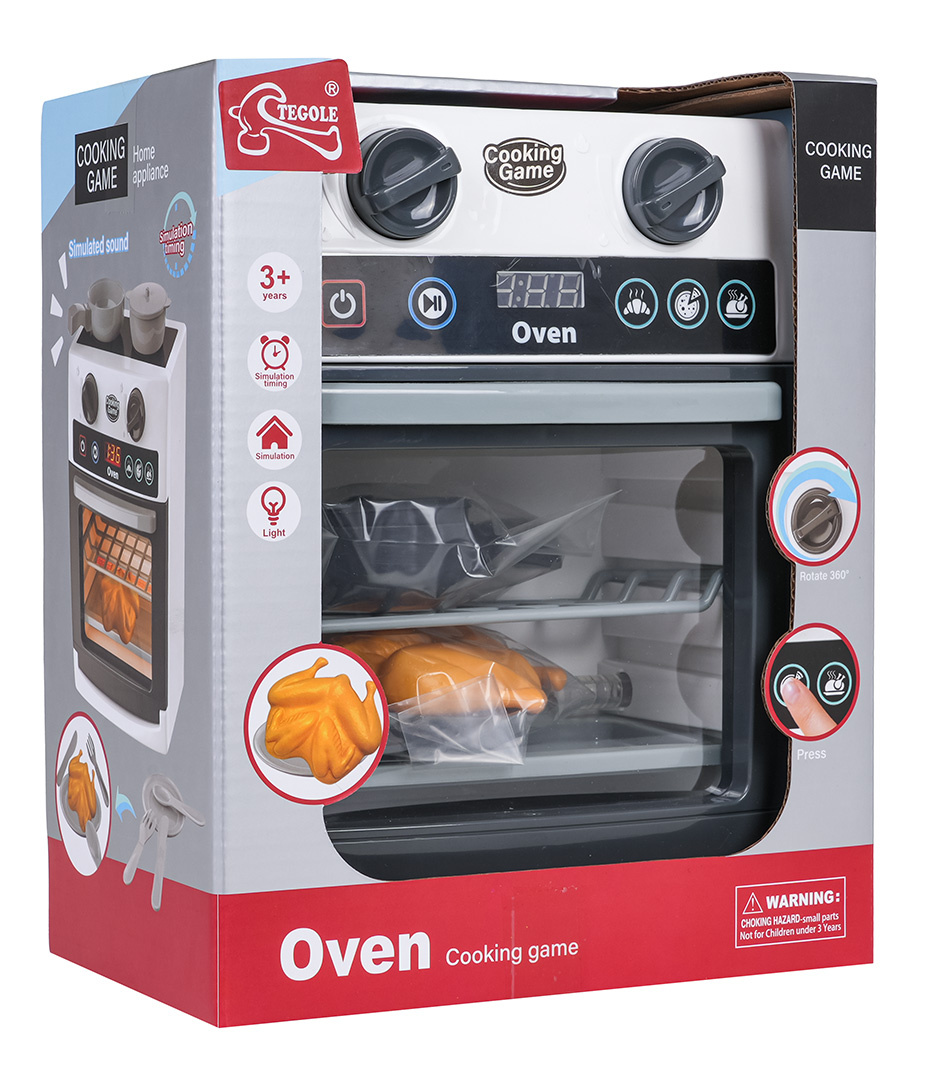 | Interaktivní trouba s funkcí zvuku a světla pro děti od tří let. Trouba je vyrobena s důrazem na detaily, vypadá a chová se jako skutečná trouba. Trouba má otevírací dveře, pohyblivé knoflíky a panel zodpovědný za zvukové a světelné efekty. V sadě se nacházejí doplňky jako atrapa kuřete, pánev, hrnec s pokličkou, talířek a příbory. Hračka je napájena bateriemi typu 3 x AA 1,5V (nejsou součástí balení).