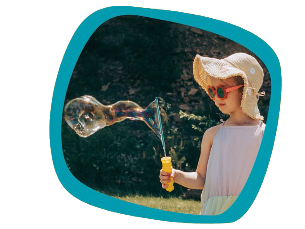 Mýdlové bubliny jsou oblíbenou zábavou malých i velkých dětí, které se rády dívají na svět skrze bublinové brýle. Tvorba bublin nebyla nikdy tak snadná! Stačí nalít tekutinu do nádoby, ponořit do ní meč a po vyjmutí s ním zamávat nebo fouknout do síťky, kde se vytvoří plochá bublinová vrstva. A hotovo! Praktický, lehký a snadno použitelný meč promění každou venkovní akci v úžasné dobrodružství.