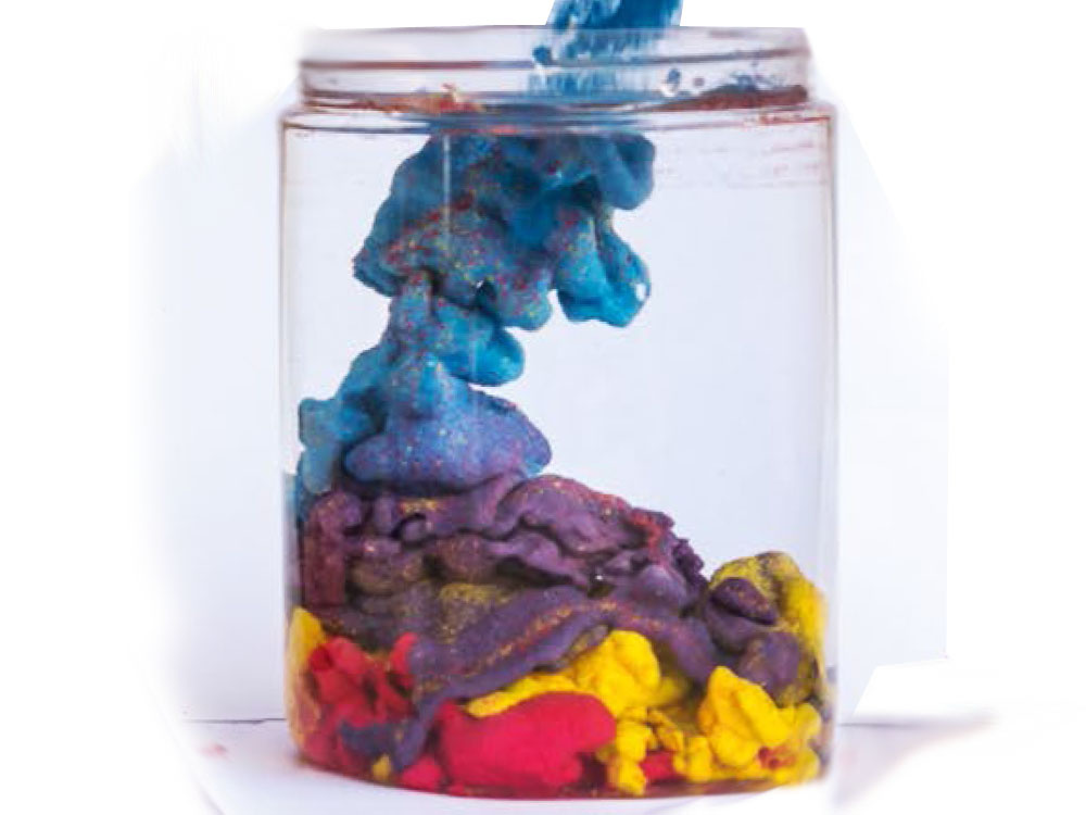 - pomocí odměrky nasypte písek do nádoby s vodou a vytvořte libovolný tvar