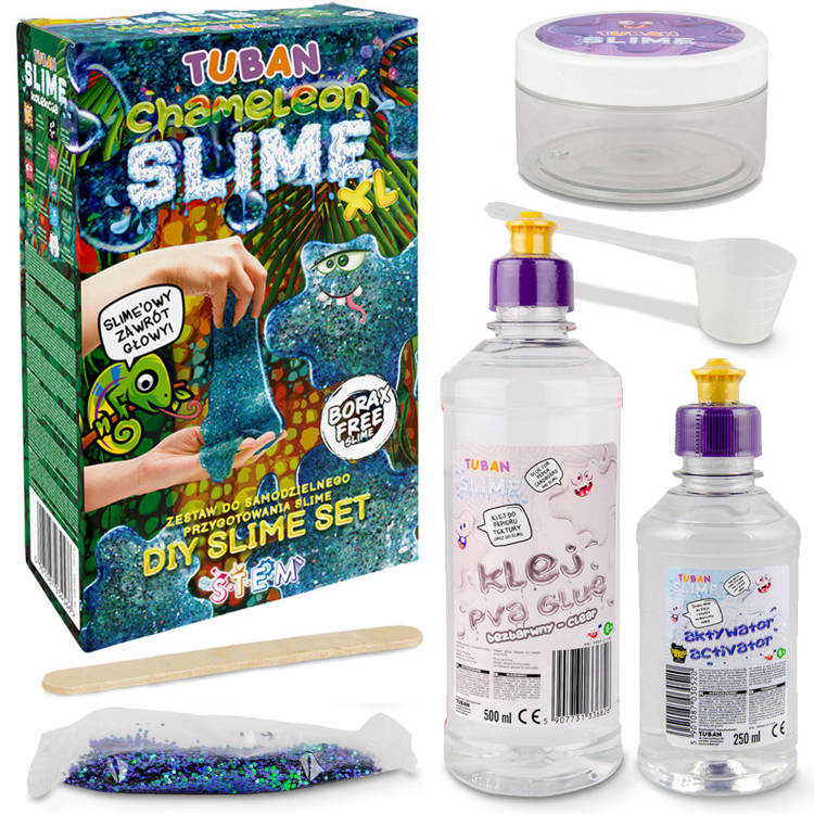 Sada Slime XL Chameleon od Tubanu je určena pro děti, které rády experimentují a kreativně si hrají!