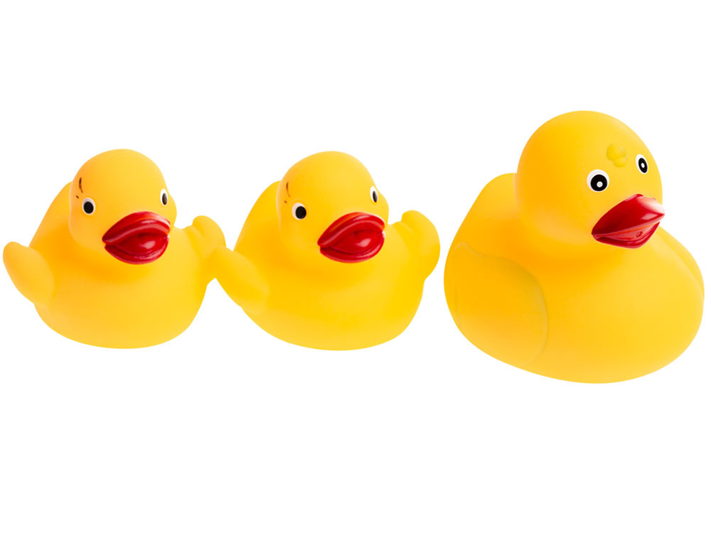 Tři žluté gumové kačenky jsou ideální na hraní ve vodě. Sada měkkých gumových kachniček poskytne spoustu veselé zábavy např. při. večerní koupel. Vymýšlení nejrůznějších kachních příběhů, zpívání písničky o podivné kachně atd., Dětská fantazie přece nemá konce!