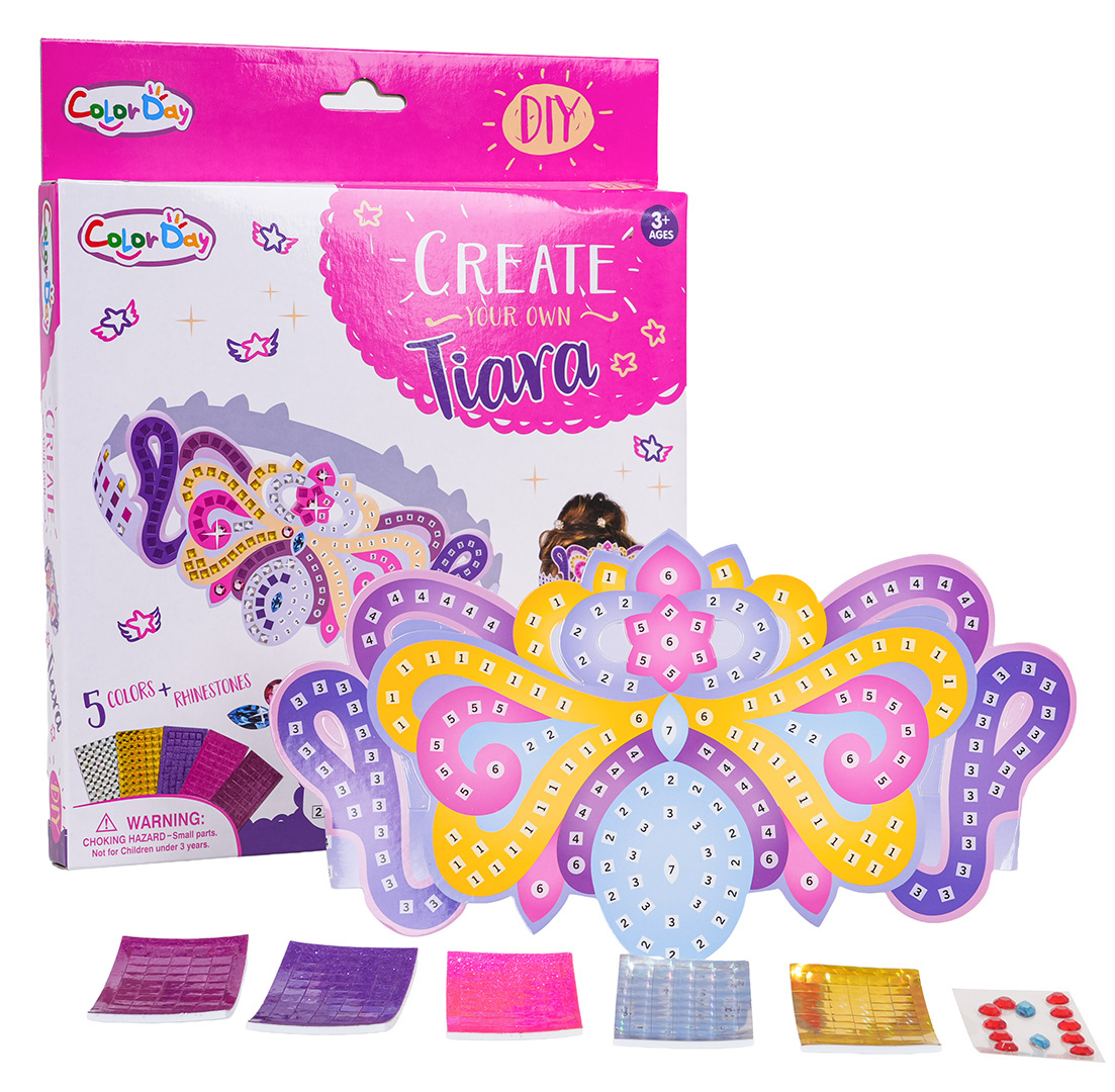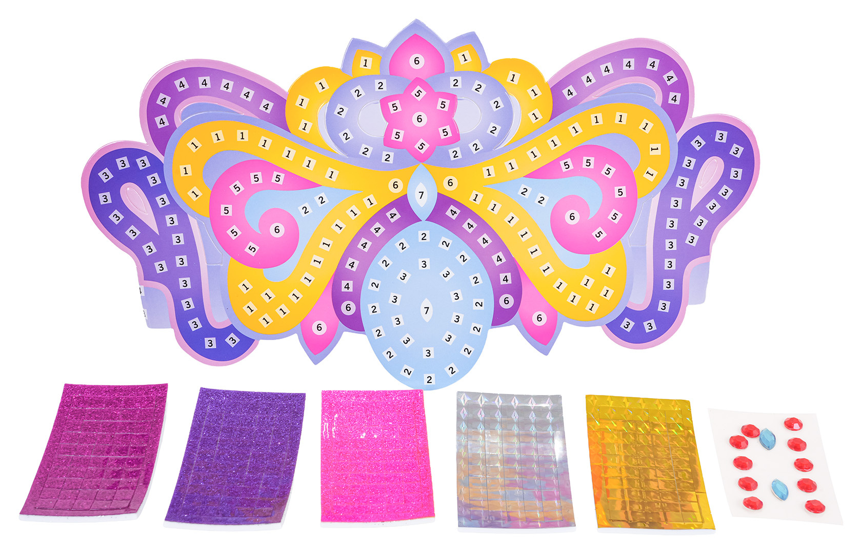 Kreativní sada pro vlastní výrobu koruny, mozaika podle čísel pro děti starší tří let. Sada se skládá z kartonové koruny, samolepek a krystalků. Úkolem dítěte je ozdobit korunu. Sada rozvíjí manuální dovednosti, procvičuje koordinaci a kreativní myšlení.