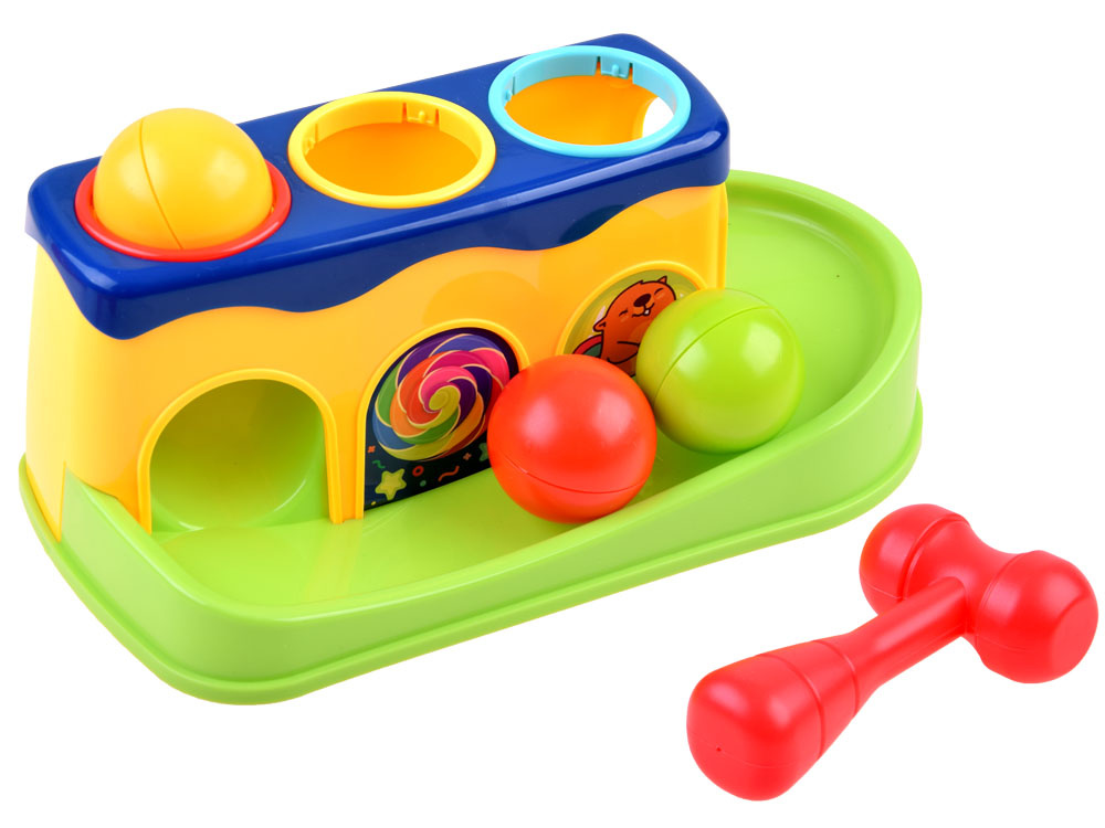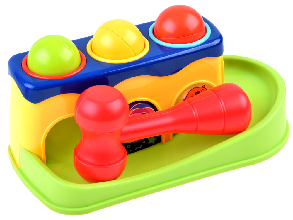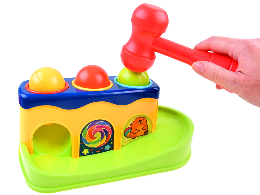 Barevné kladívko je interaktivní hračka pro děti. Sada se skládá z kladiva, stojanu a 3 barevných míčků. Hra spočívá v tom, že se červeným kladívkem trefíte do barevných kuliček v otvorech tak, aby spadly dolů a kutálely se po skluzavce. Výrobek je vyroben s ohledem na nejmenší děti, má hladký povrch a zaoblené hrany. Všechny dílky jsou vyrobeny z barevného plastu, takže se barvy během hry neodírají. Hračka je vzdělávací, umožňuje dítěti procvičovat trefování do terče, rozlišování barev, procvičování koordinace vzorů a pohybů, rozvíjí logické myšlení. Mimochodem, dítě hrající si s touto hračkou ušetří vybavení domácnosti, např. dálkové ovládání mobilního telefonu nebo televize, které se často používá k zasažení čehokoli nebo kdekoli.