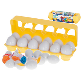 V sadě najdete 12 vajíček, která pod skořápkou skrývají různé tvary a barvy.