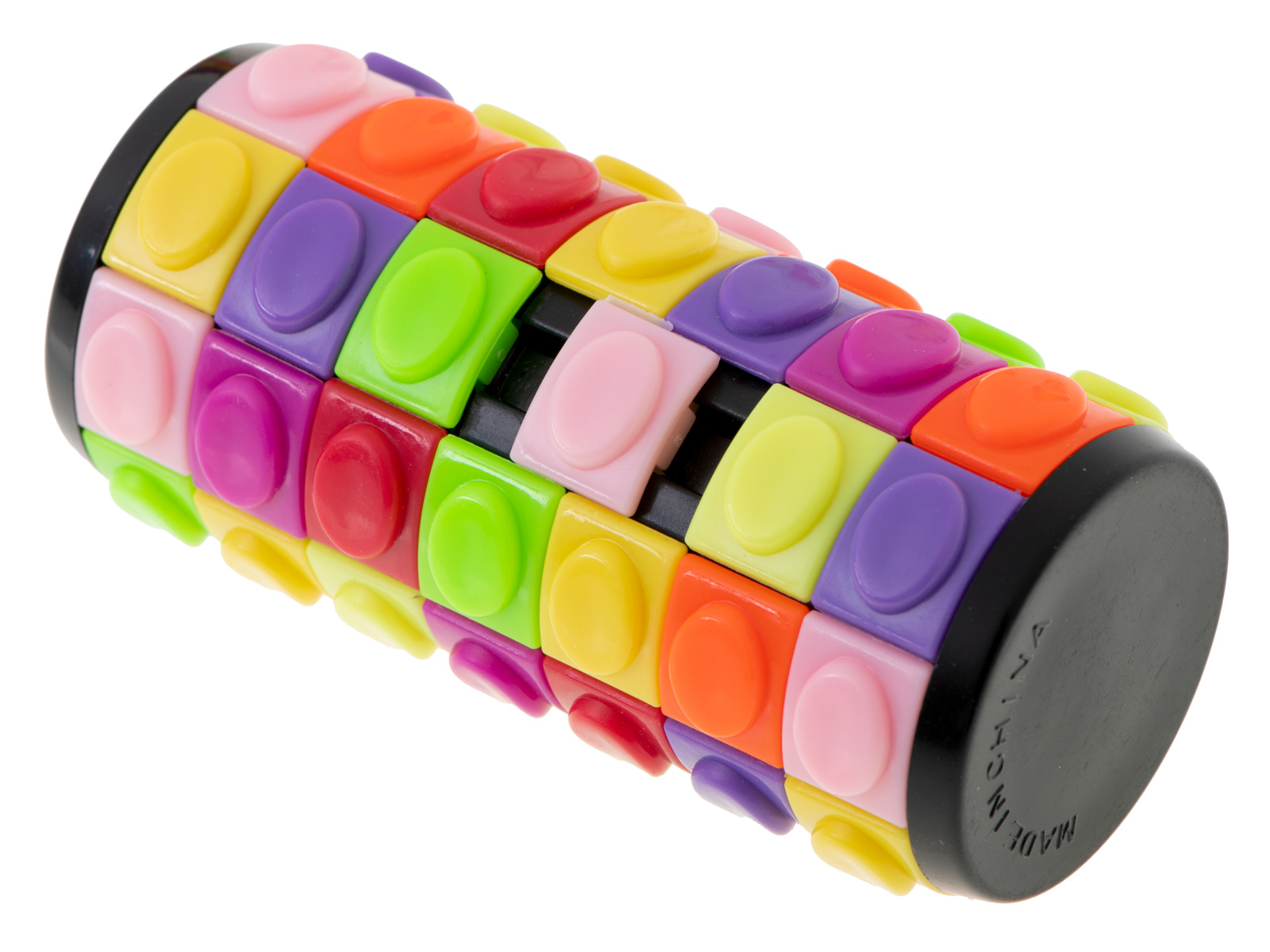 Kroužky lze libovolně otáčet a přitom měnit uspořádání barevných kostek.