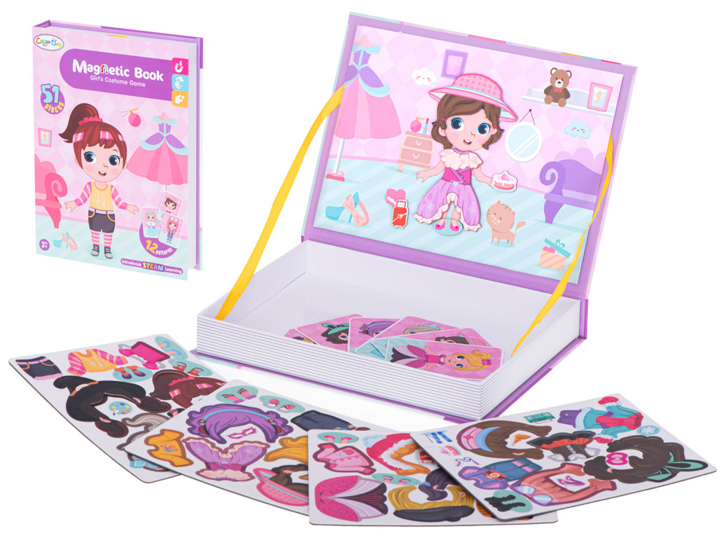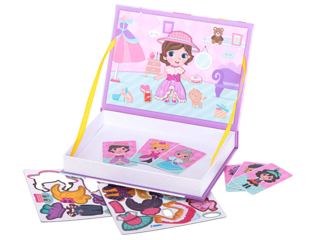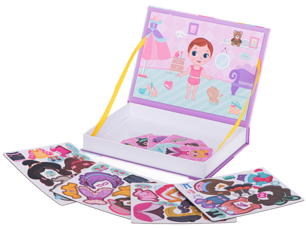 Skvělá hádanka - oblékni si panenku. Upoutá pozornost každého batolete. Hra zahrnuje vytváření různých scén. Vytváření obrázků podporuje kreativitu a představivost dítěte. Obsahuje: magnetickou tabuli, 6 karet, 51 hádanek. Rozměry. dívky: 12 cm.Celý popis