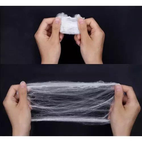 Bílá pavučina velmi věrně reprodukuje vzhled pavučiny, který lze pozorovat v přírodních podmínkách v tmavých sklepech nebo v nenavštěvované půdě po dlouhou dobu. Nabízená umělá pavučina je navíc dodávána se dvěma černými plastovými pavouky, díky kterým je dekorace ještě děsivější. Umělou pavučinou můžete ozdobit dýně, skříňky, lustry nebo svačinový stůl, pavouky postavit na viditelné místo.
