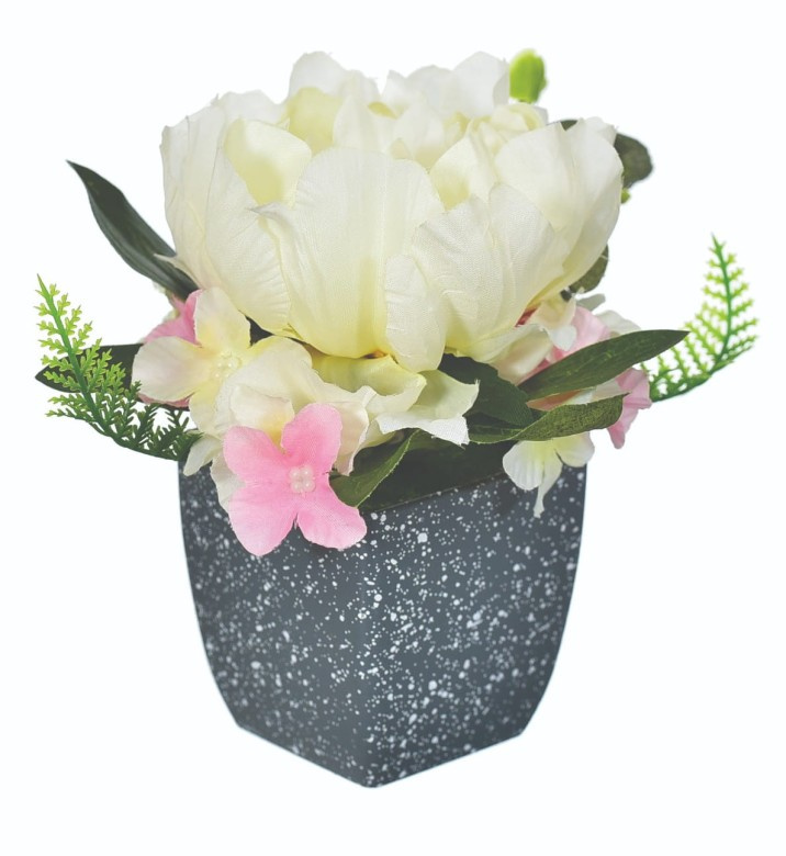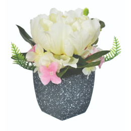 Tato krásná kompozice o výšce 14 cm s realisticky ztvárněnými bílými květy dokonale imituje živou rostlinu, přičemž si zachovává svěží vzhled po dlouhou dobu. Díky péči o detaily se hortenzie prezentuje výjimečně přirozeně a její jemná barevnost dodá kouzlo každé místnosti.