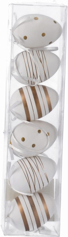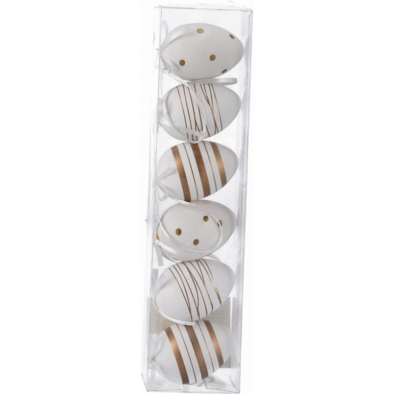 Vneste elegantní a lesklý akcent do své velikonoční výzdoby s touto sadou 6 zlatých vajíček! Tato stylová vajíčka jsou ideální dekorací, která dodá lesk vašim jarním aranžmá a svátečním ozdobám. Skvěle se hodí na stůl, do košíku, do váz nebo jako ozdoba na stěně či okně.