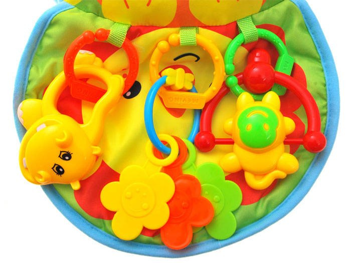 Výrazné barvy upoutají pozornost batolete a podpoří jeho schopnost rozlišovat tvary a barvy. Chrastítka pozitivně ovlivňují rozvoj sluchu a koordinace rukou - můžete s nimi nechat dítě volně hrát nebo je připevnit k měkkému válečku.