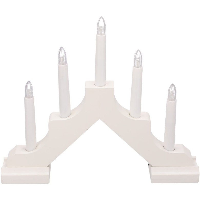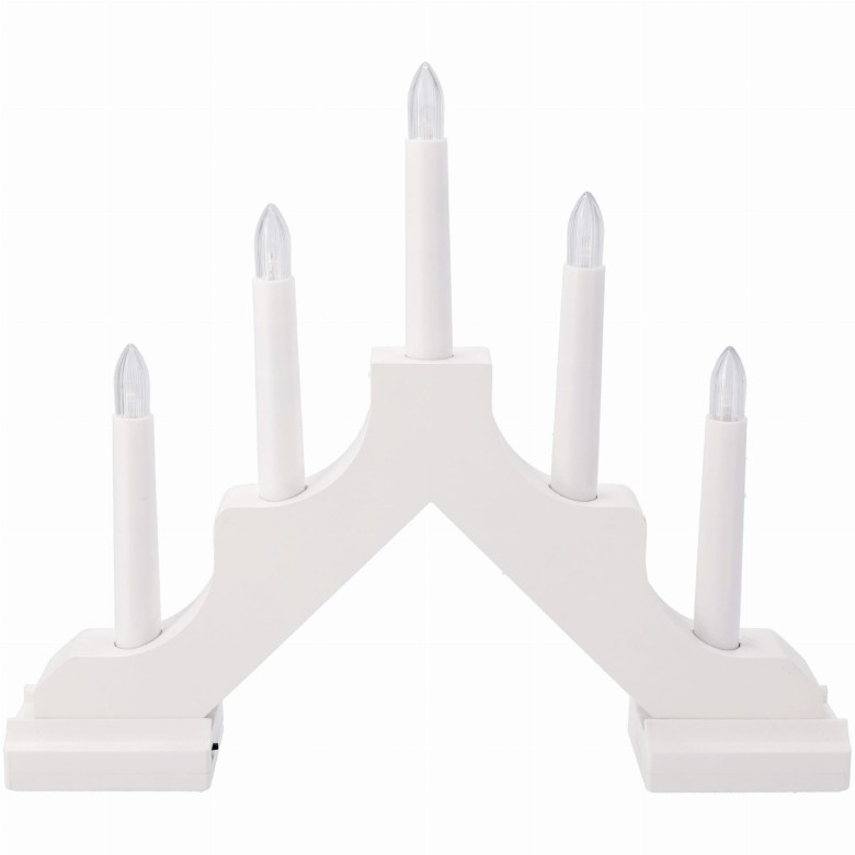 Tato univerzální lucerna s 5 světelnými body je ideální dekorací na parapet, komodu nebo vánoční stůl. Jemné, teplé LED světlo vytváří útulnou atmosféru bez rizika otevřeného ohně – ideální řešení pro domov s dětmi nebo zvířaty. 5 vestavěných LED diod – napodobují skutečné svíčky. Stylová forma lucerny – ideální do všech interiérů - bílá barva zajišťuje univerzálnost. Funkce TIMER – automatické zapínání a vypínání Napájení na baterie 3xAA – bez kabelů, plná mobilita - baterie nejsou součástí balení. Barva: LED diody svítí teplou bílou barvou.