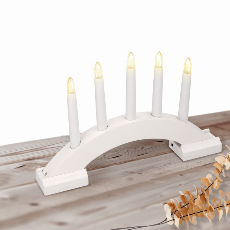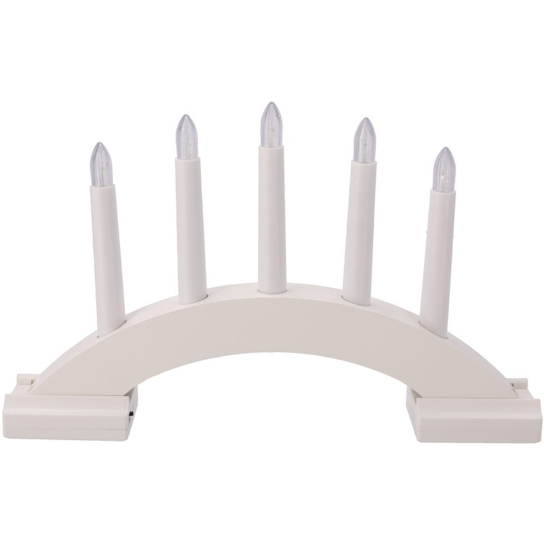 Tato univerzální lucerna s 5 světelnými body je ideální dekorací na parapet, komodu nebo vánoční stůl. Jemné, teplé LED světlo vytváří útulnou atmosféru bez rizika otevřeného ohně – ideální řešení pro domov s dětmi nebo zvířaty. 5 vestavěných LED diod – napodobují skutečné svíčky. Stylová forma lucerny – ideální do všech interiérů - bílá barva zajišťuje univerzálnost. Funkce TIMER – automatické zapínání a vypínání Napájení na baterie 3xAA – bez kabelů, plná mobilita - baterie nejsou součástí balení. Barva: LED diody svítí teplou bílou barvou.