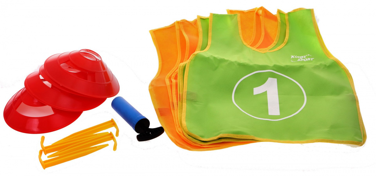 | - branka se sítí, - podložka pro trénink na terč, - míč, - pumpička, - 4 vesty, - 4 kolíky, - 6 značkovačů. | |