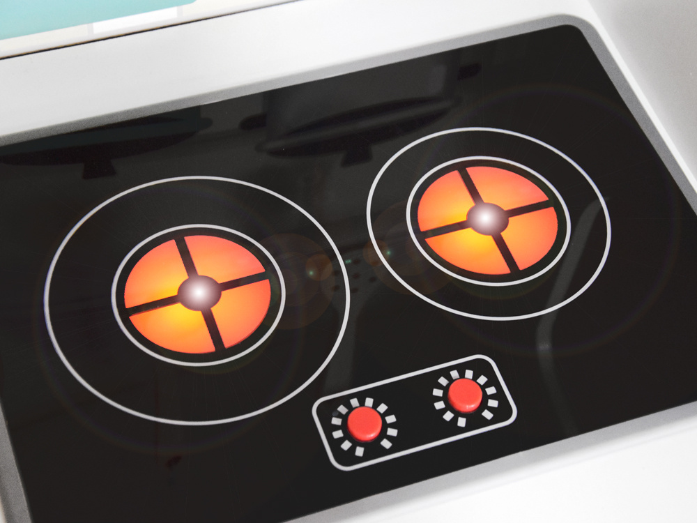 - dvou plotýnková indukční varná deska se zvukem syčení na jednom hořáku a bublání na druhém hořáku s efektem osvětlení