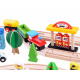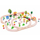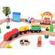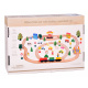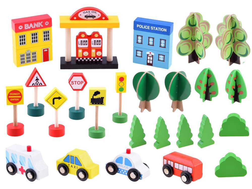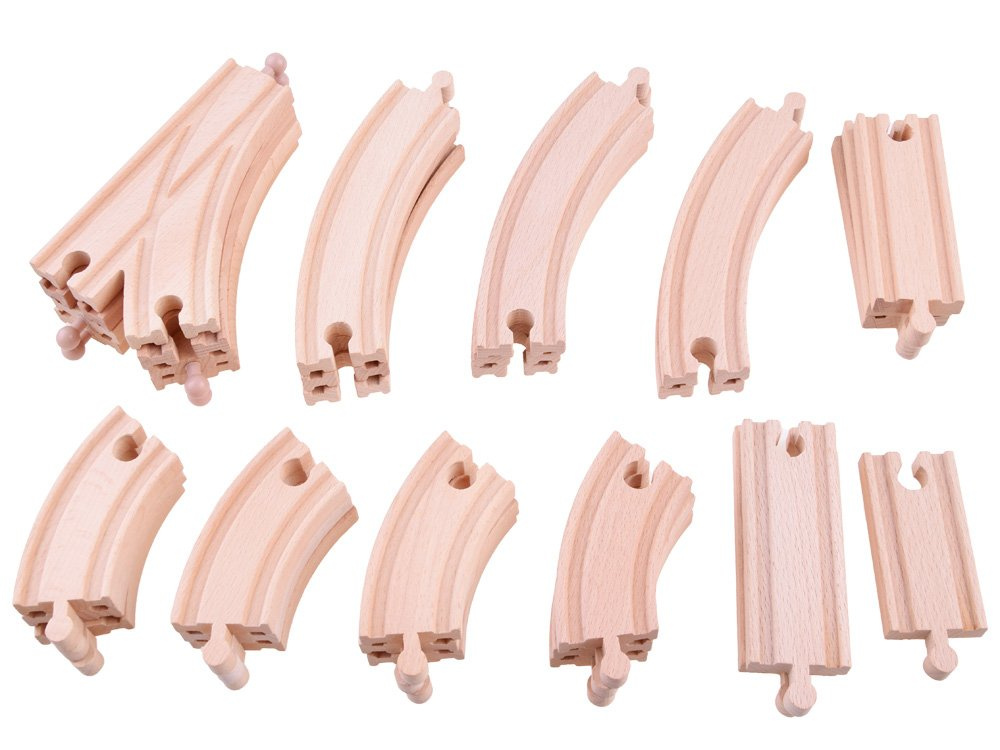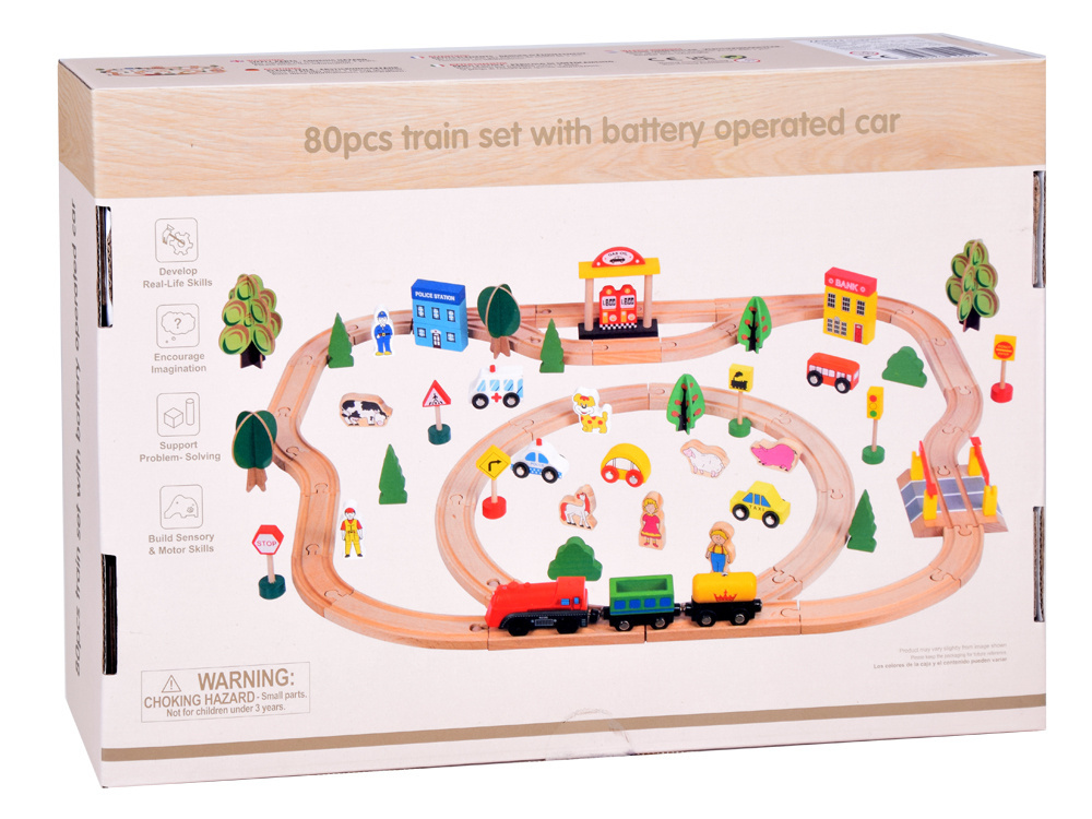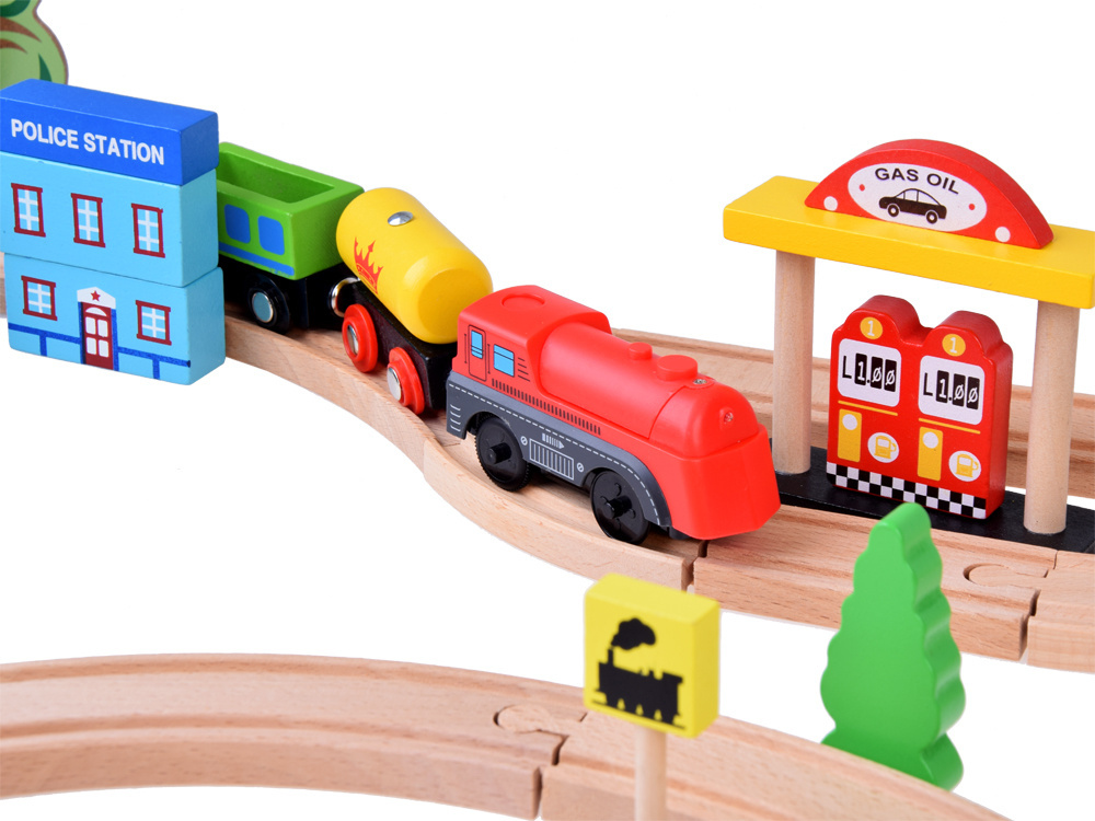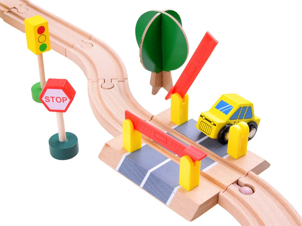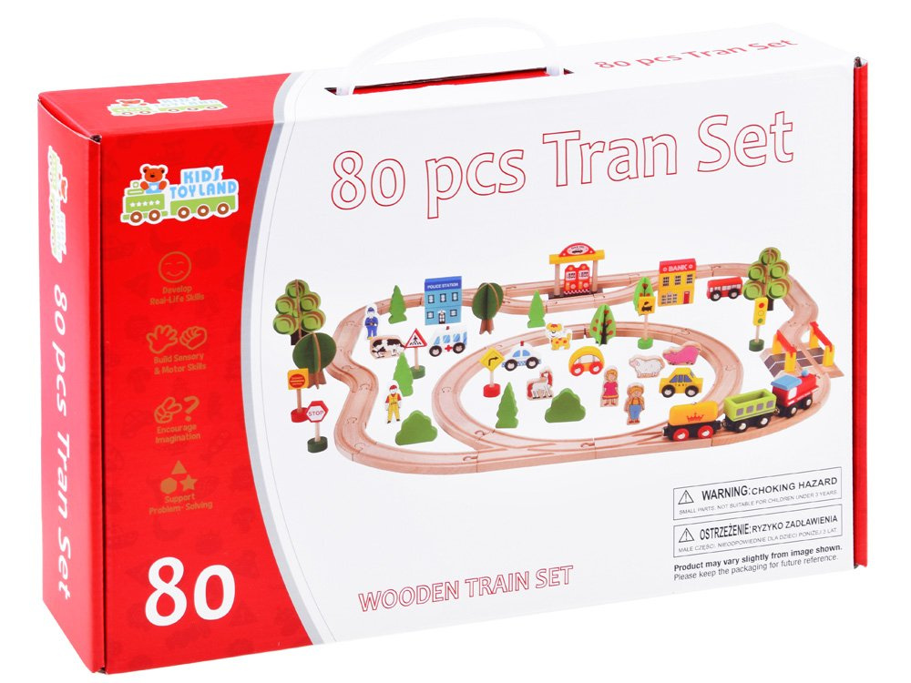 Dřevěná vláčkodráha je skvělá hračka pro nejmenší děti. Skládá se až z 80 prvků a délka dráhy je 360 cm. Každý z nich byl velmi pečlivě a esteticky vyroben ze dřeva s důrazem na každý malý detail. Sada je navržena s ohledem na nejmenší děti, takže všechny dílky jsou barevné, vhodné pro malou dětskou ruku a vyrobené tak, aby zajistily šťastnou a bezpečnou hru. Sada se skládá z vlaku s vagóny (spojenými magnety), kolejí s přejezdem, postaviček zvířat a lidí, dopravních značek, stromů a keřů, aut, budov a čerpací stanice. Tento počet dílků dává vašemu dítěti možnost neomezené hry, můžete si hrát s jednotlivými dílky nebo s jejich pomocí vytvořit krásné barevné město, které kypí životem. Výhodou je, že prvky lze měnit, takže se hraní rychle neomrzí. Nespornou výhodou je, že sada je celá vyrobena ze dřeva. Díky tomu je bezpečnější, odolnější a šetrnější k životnímu prostředí než hračky z plastu.