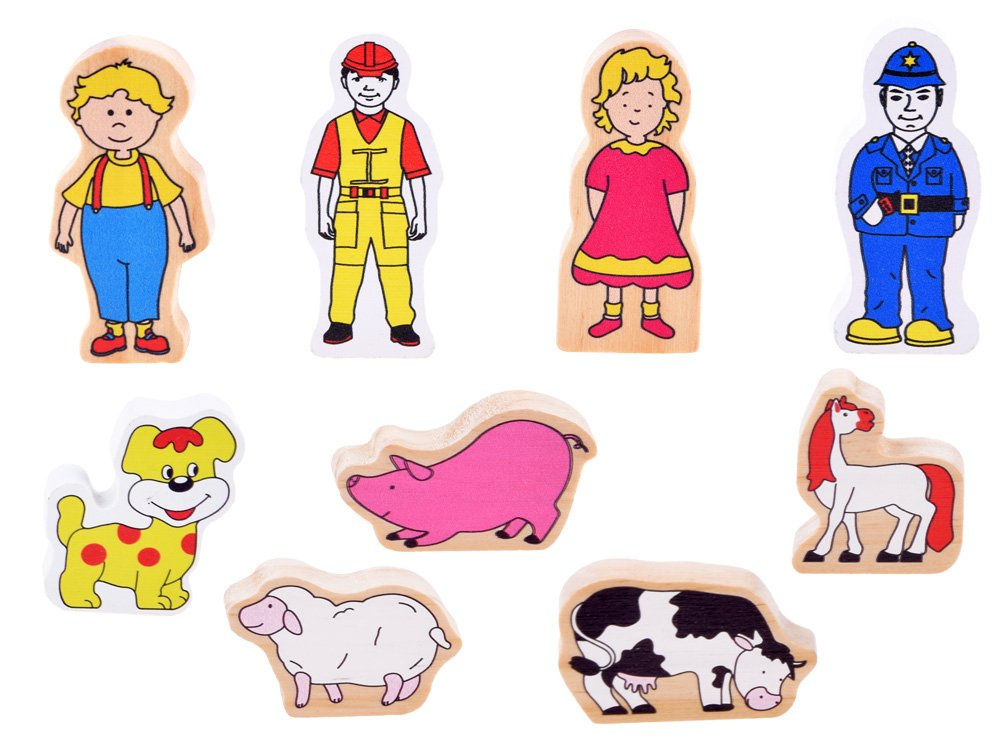 - zvíře: pes 5 cm x 4 cm x 1 cm, prase 6 cm x 3,5 cm, kráva 5,5 cm x 3,5 cm, ovce 5,5 cm x 3 cm, kůň 4,5 cm x 3,5 cm