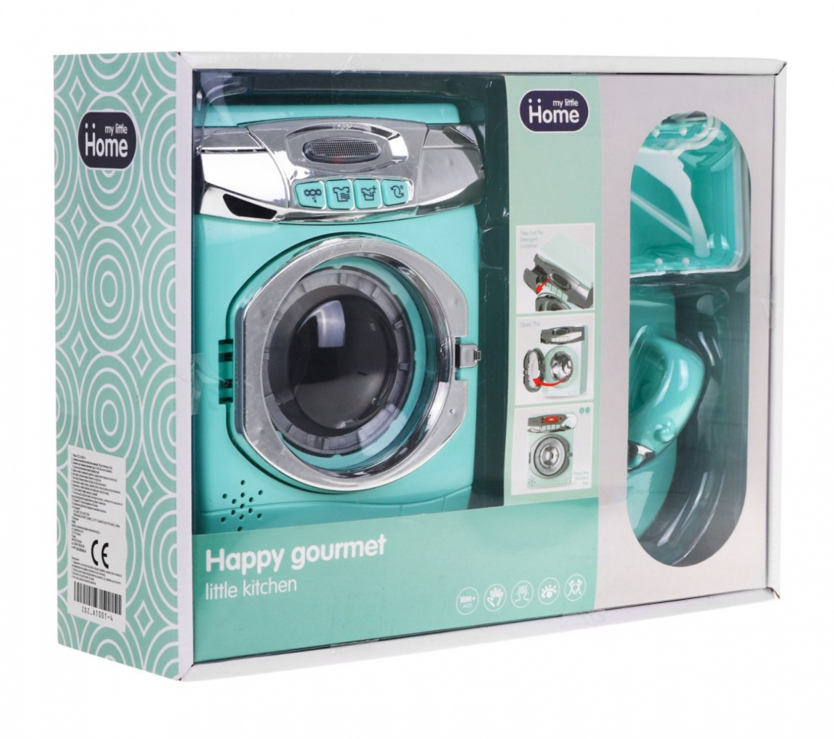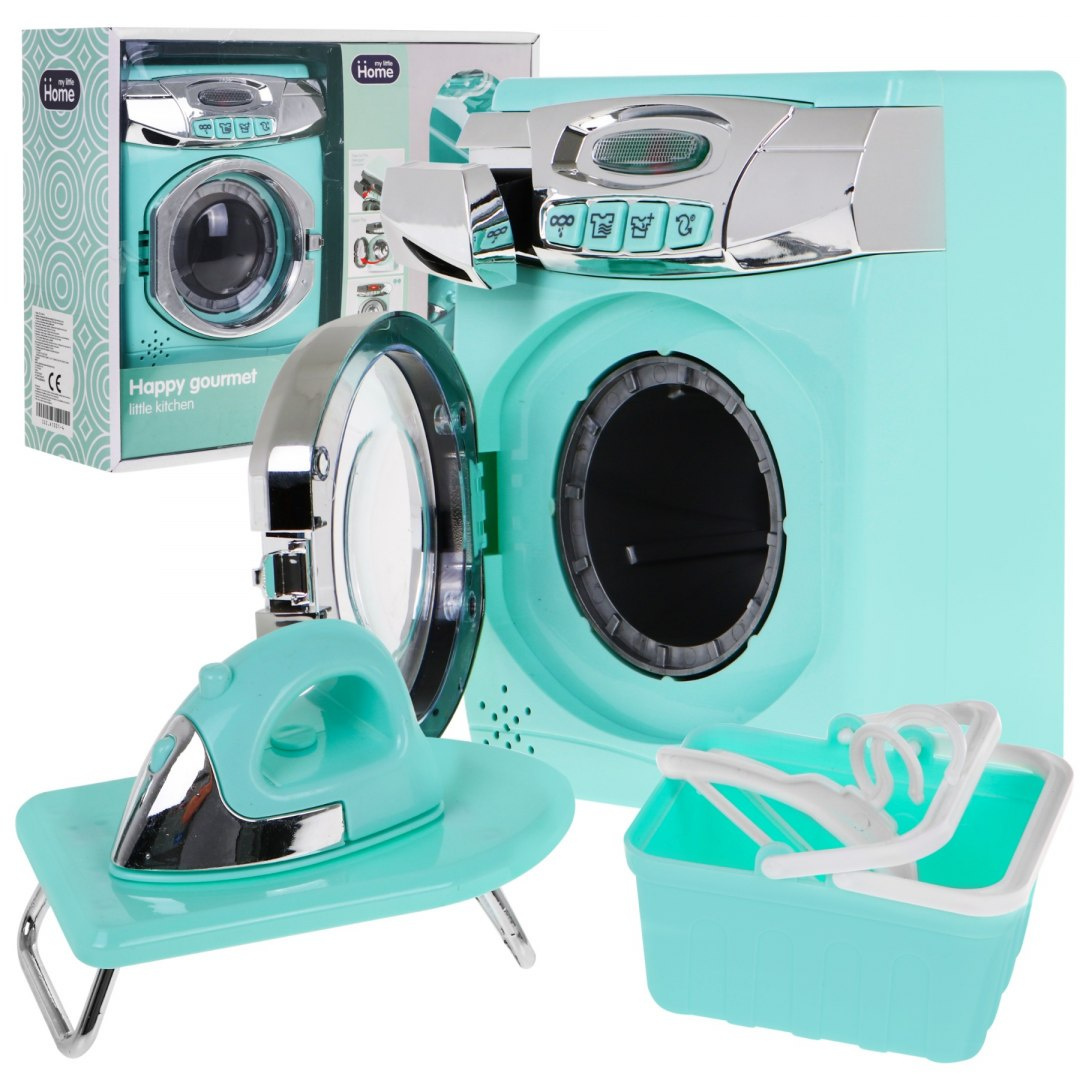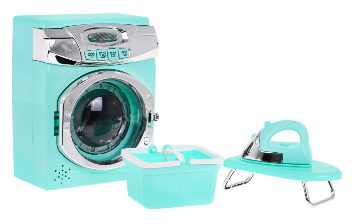 Interaktivní sada pračky, žehlicího prkna a koše na prádlo je určena pro všechny děti, které rády napodobují své rodiče při každodenních domácích pracích. Pračka je napájena bateriemi typu AA - 3 x 1,5 V (nejsou součástí dodávky). Má zvukové a světelné efekty. Tlačítka určují prací programy a v závislosti na programu uslyšíte z pračky různé zvuky a rozsvítí se kontrolka LED na přední straně pračky.