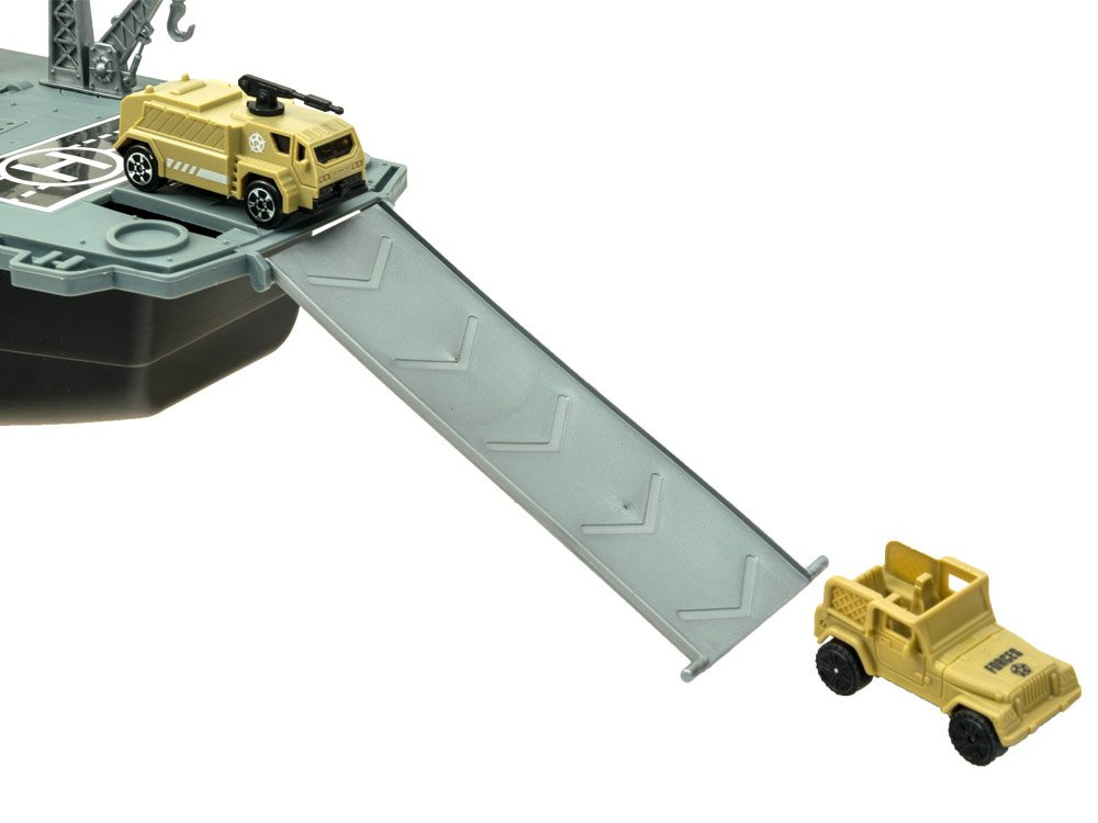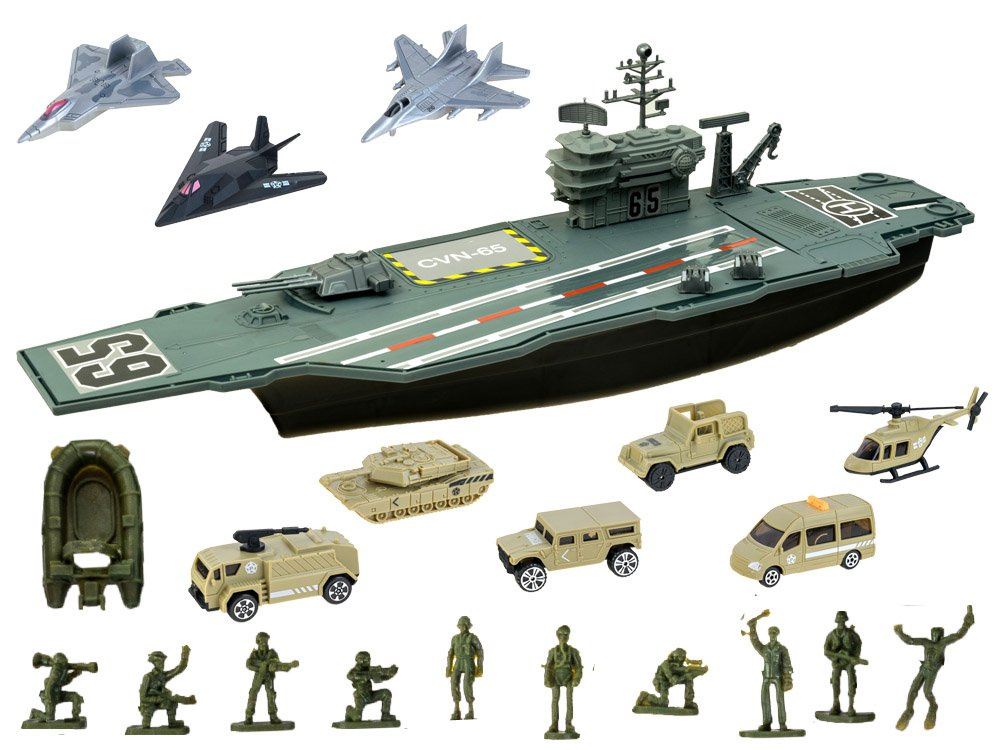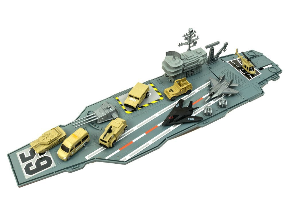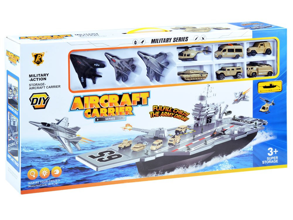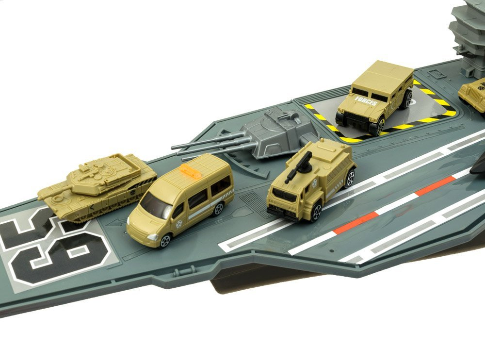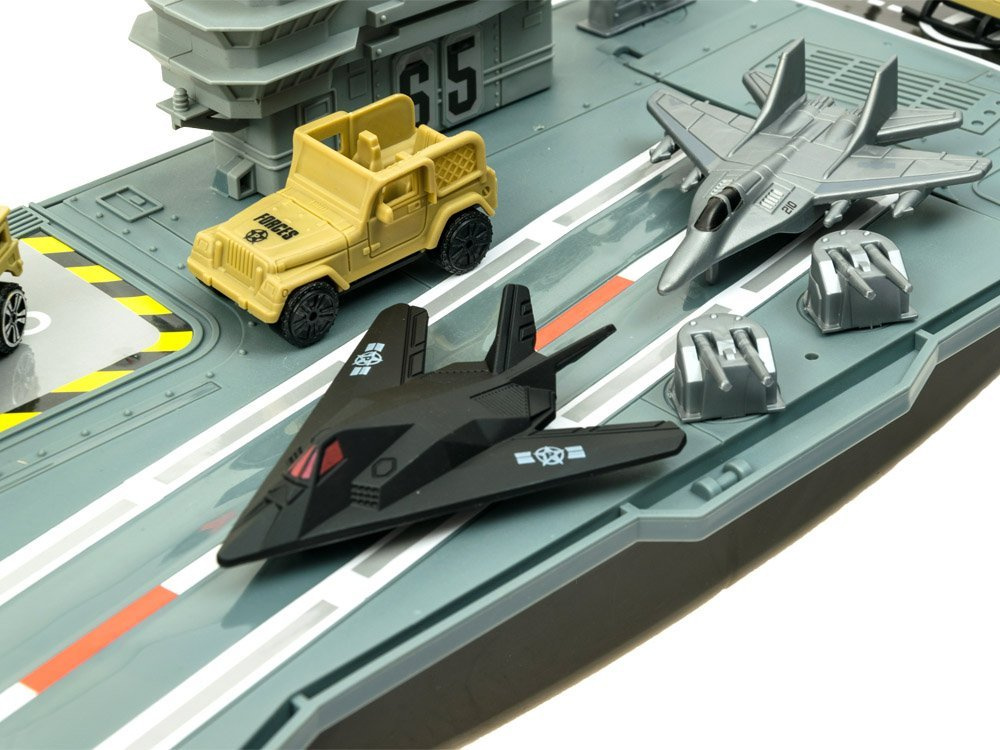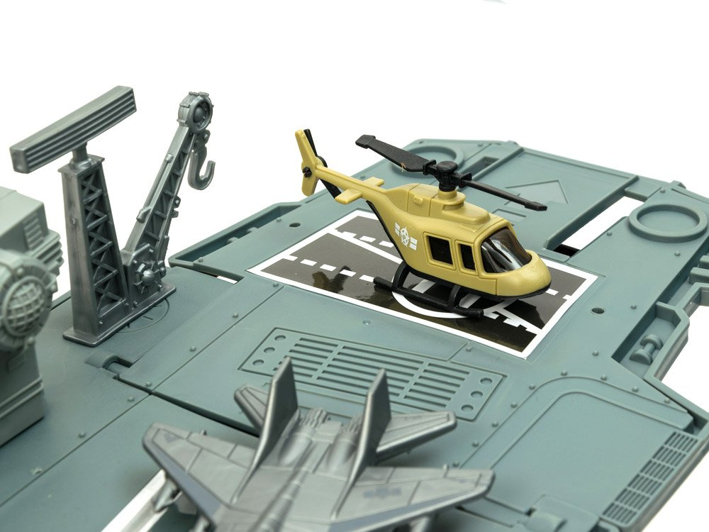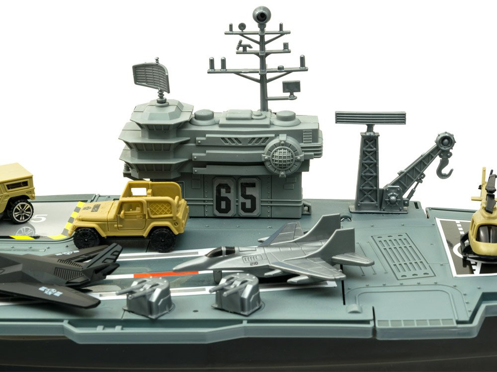 Obrovská letadlová loď je pro znalce vojenské techniky opravdovou lahůdkou. Letadlová loď spolu se štábem vojenských letadel a vojenských vozidel jistě potěší každého malého a pravděpodobně i velkého fanouška vojenské techniky. Letadlová loď, stejně jako stíhačky a vojenská vozidla, je vyrobena z plastu, je velmi estetická a přesná. Uvnitř má úložný prostor pro nepoužívané příslušenství.