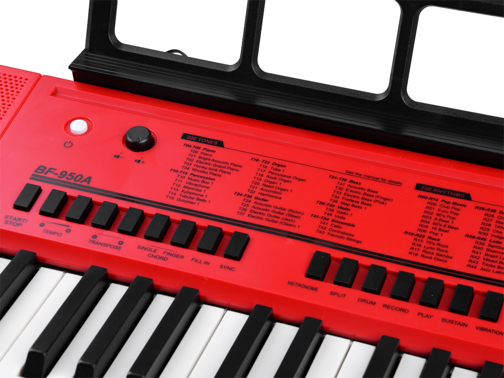 Velké hudební varhany pro děti 61 kláves + mikrofon. Varhany se zabudovanou baterií vydrží hrát bez elektřiny přibližně 1 hodinu, což je splněný sen každého začínajícího malého hudebníka. Vyznačují se moderním designem, velmi pečlivým zpracováním a důrazem na detail a vypadají jako profesionální hudební zařízení. Model BF-950A s klávesnicí má mnoho skvělých funkcí. Je vhodná pro začátečníky a ideální pro nácvik a rozvoj hudebních dovedností.