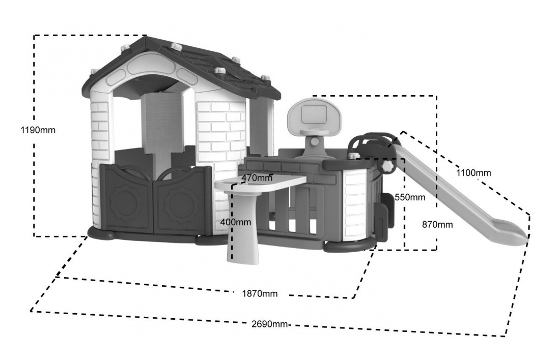 | Specifikace | Zahradní domek se skluzavkou, basketbalovým košem a zahradou se stolem [ZOG.CHD-808]