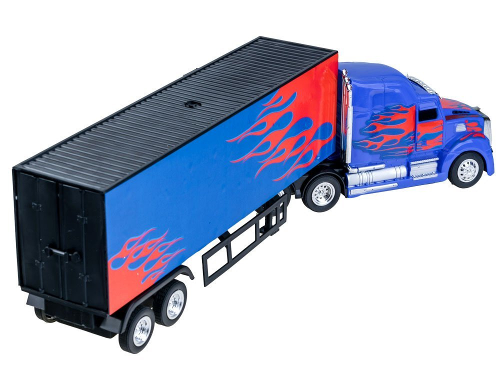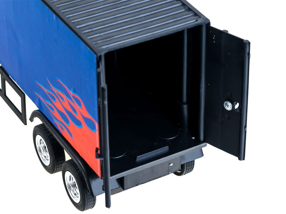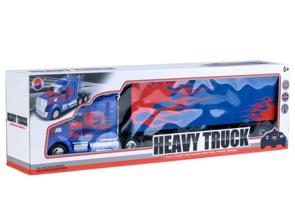 Velké nákladní auto na dálkové ovládání pro malého řidiče. Americké auto ve stylu traktoru splní sen každého chlapce. Asi každý malý kluk se zájmem o motorismus by chtěl řídit nákladní auto. Nejlépe podobný, americký. Hračka TIR s návěsem na dálkové ovládání je v tmavě modré a červené barvě s plameny.