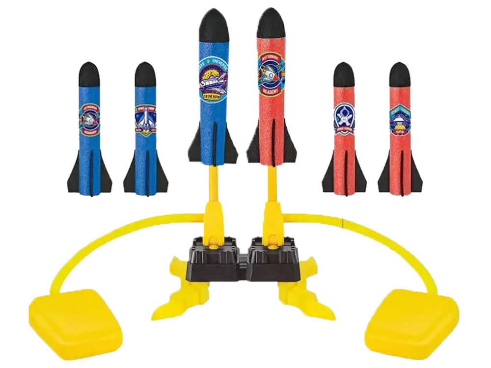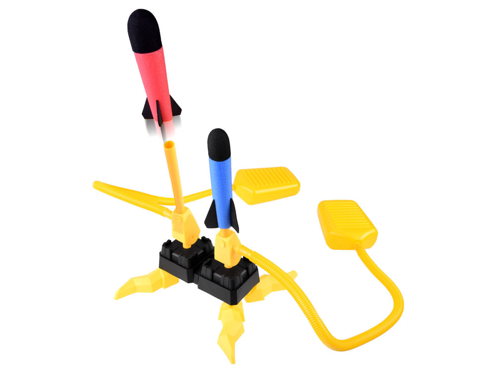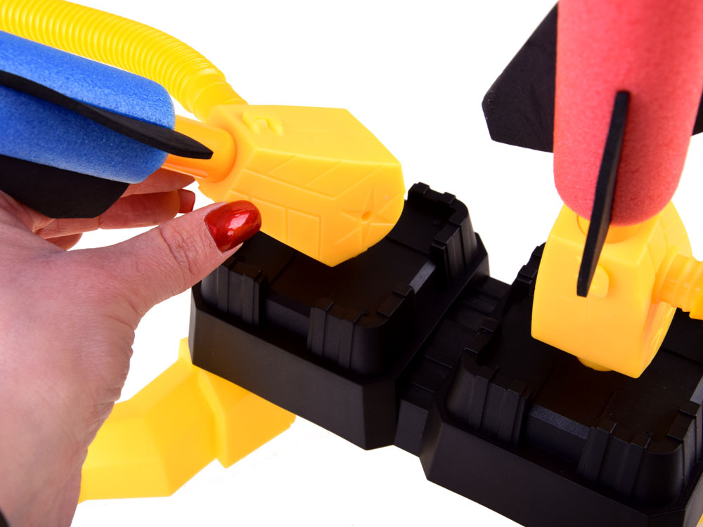 Velký raketomet s dělem je určen pro všechny milovníky zábavy.Skvělá venkovní zábava zaručena, zcela pohltí nejen děti, ale i dospělé. Odpalovací zařízení je vyrobeno výhradně z plastu, zatímco pěnové rakety jsou měkké, takže po pádu z výšky nepoškodí žádné předměty v domě a nikomu neublíží. Odpalovací mechanismus se velmi snadno ovládá, snadno ho zvládne každý, dokonce i malé dítě - k odpálení rakety stačí šlápnout na pružnou nádržku se vzduchem.Skvělý nápad, jak si užít pobyt v přírodě s rodinou a přáteli. Vypusťte raketu co nejdále a pokuste se ji chytit, až se bude vracet zpět na zem. Velmi lehké rakety mohou vystoupat velmi vysoko. Díky pohyblivému dělu lze nastavit směr a výšku vystřelené rakety.