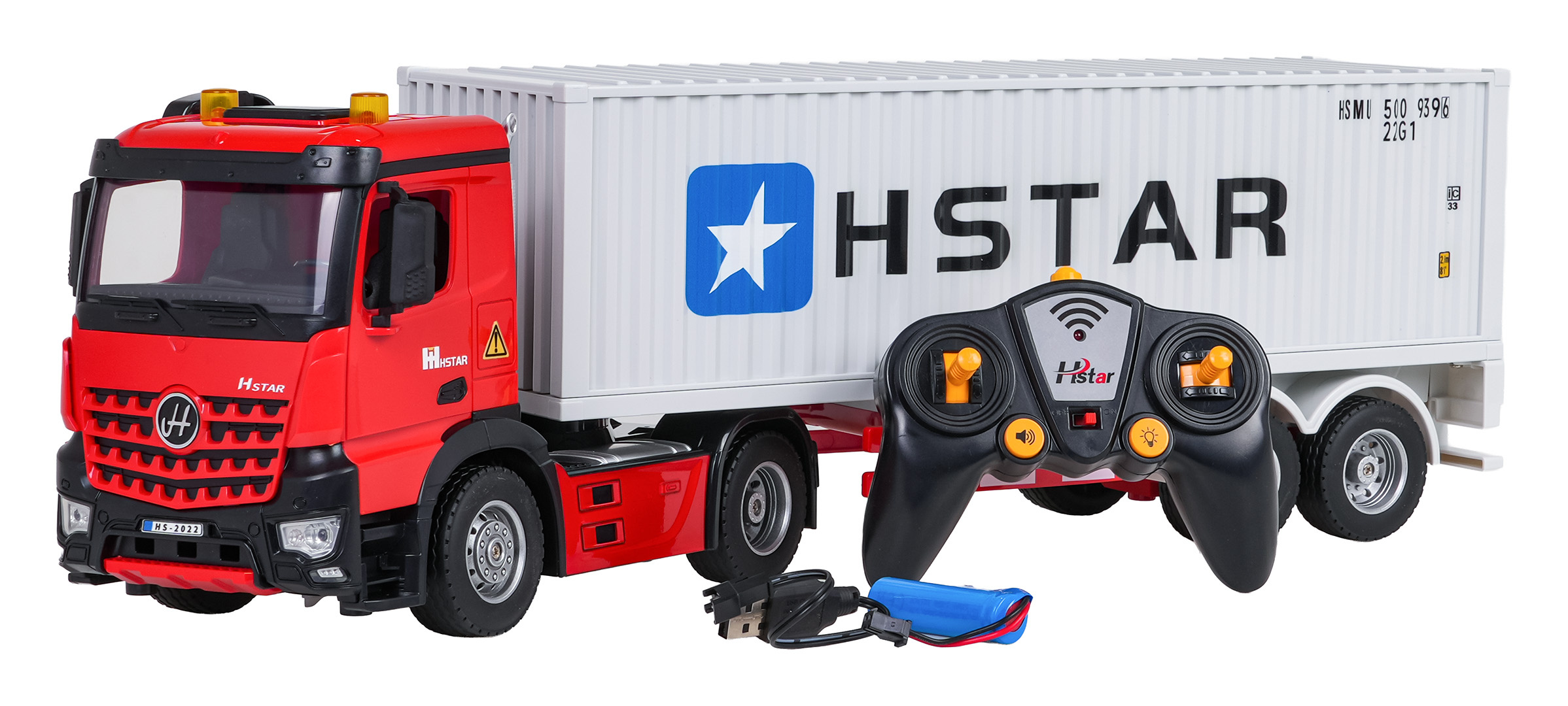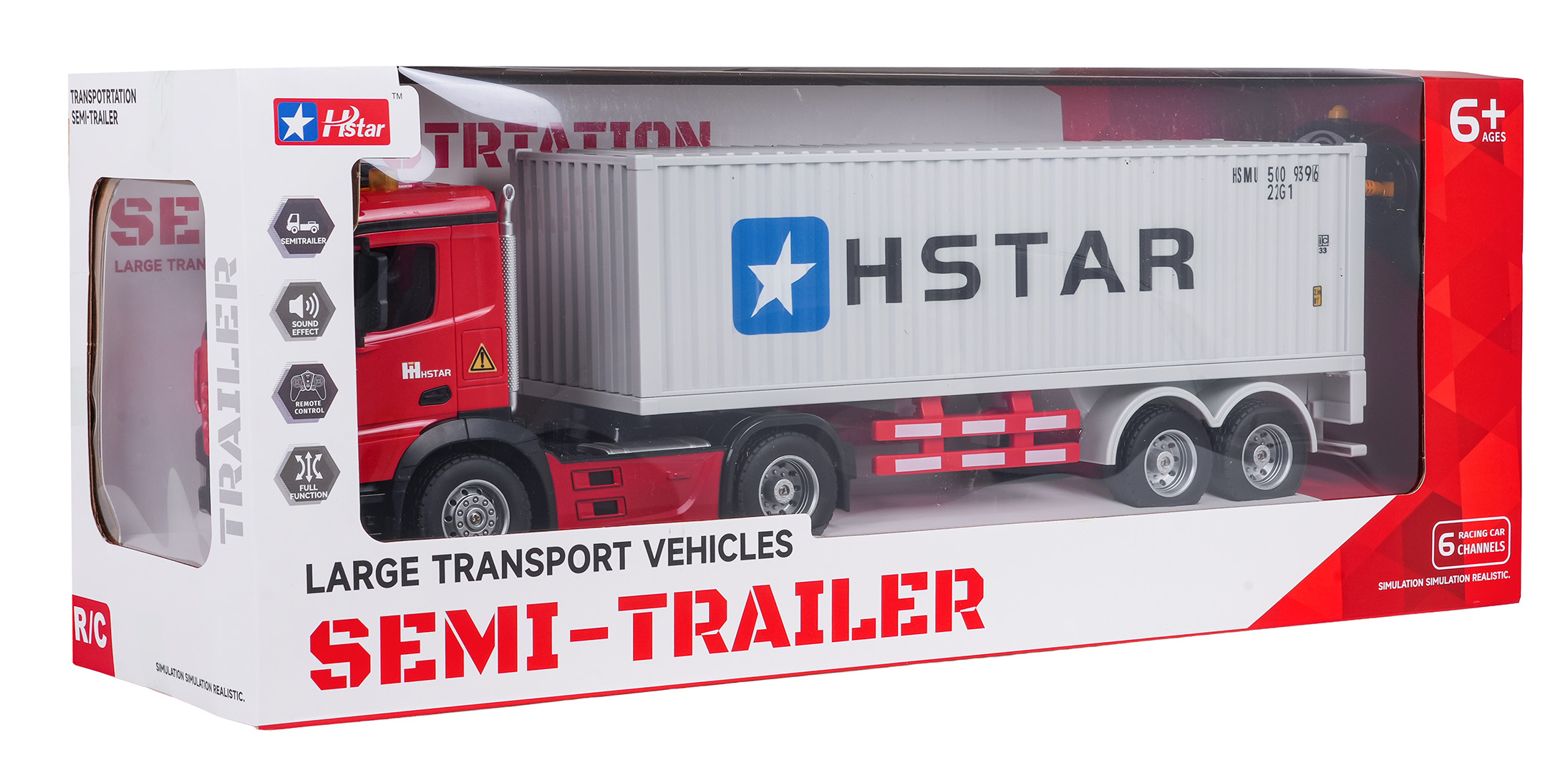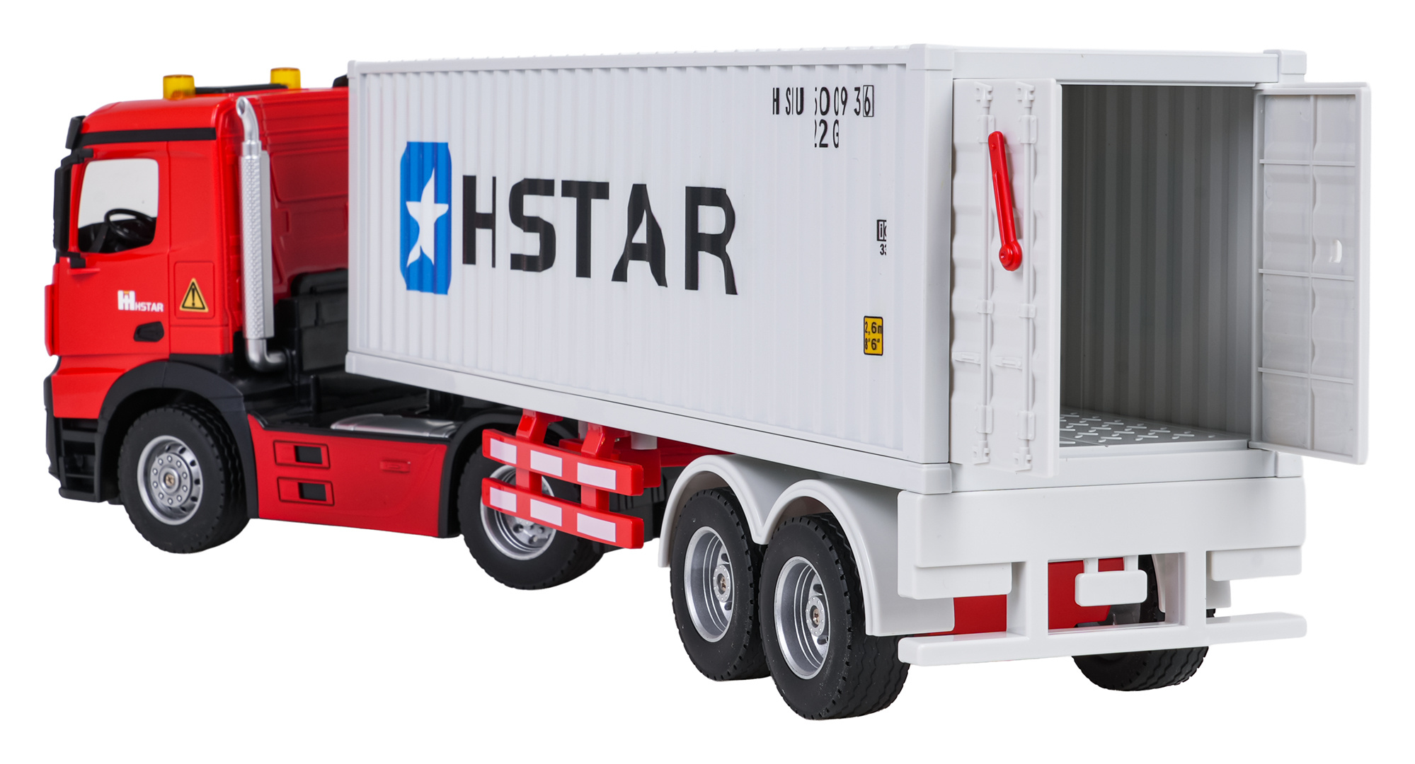 | Dálkově ovládaný nákladní vůz s kontejnerem pro děti od šesti let. Kontejner můžeme odpojit od vozidla a hrát si jen s nákladním autem. Vozidlo má gumové pneumatiky, které dobře drží na povrchu, na střeše nákladního auta a v jeho přední části svítí světla. Vozidlo je ovládáno dálkovým ovladačem, jezdí dopředu, dozadu, zatáčí doleva a doprava. Z pilota můžeme také zapínat a vypínat osvětlení a zvuky. Hračka je napájena akumulátorem typu 3,7V (v balení), ovladač bateriemi typu 2 x AA 1,5V (nejsou v balení).