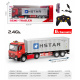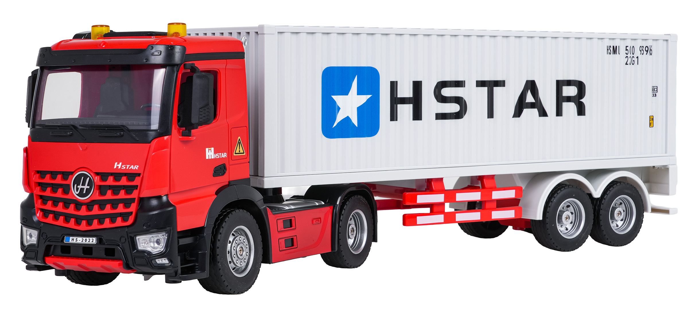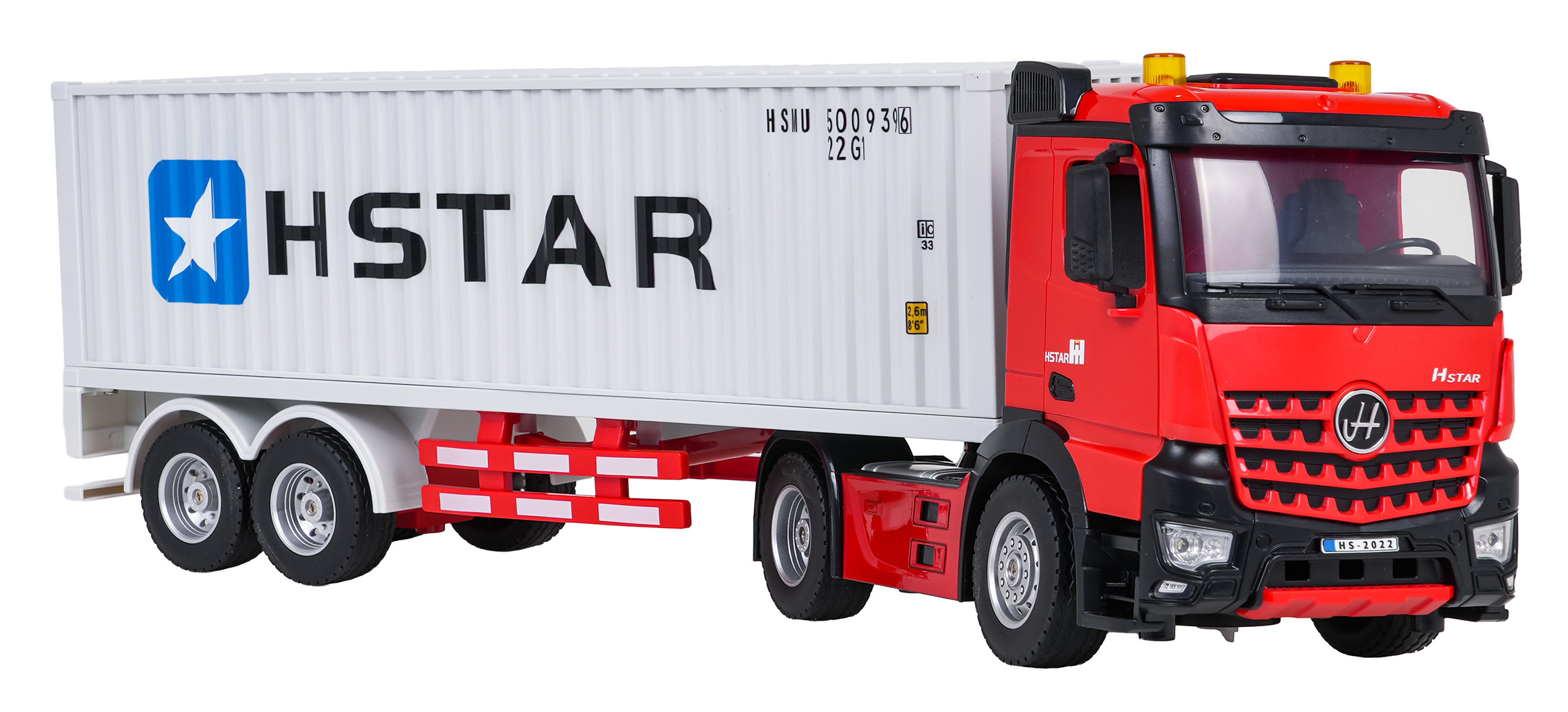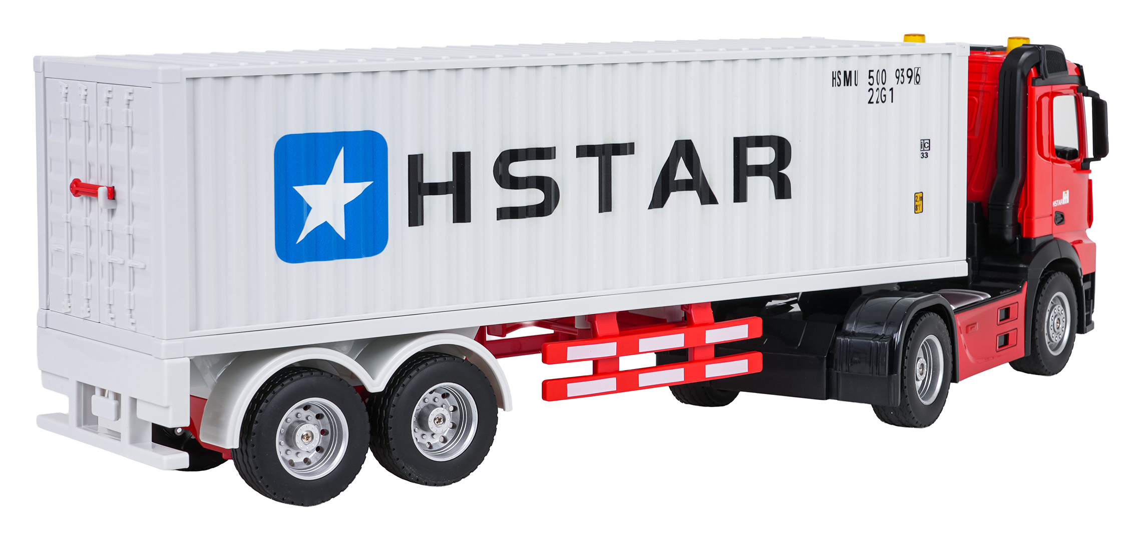 | Dálkově ovládaný nákladní vůz s kontejnerem pro děti od šesti let. Kontejner můžeme odpojit od vozidla a hrát si jen s nákladním autem. Vozidlo má gumové pneumatiky, které dobře drží na povrchu, na střeše nákladního auta a v jeho přední části svítí světla. Vozidlo je ovládáno dálkovým ovladačem, jezdí dopředu, dozadu, zatáčí doleva a doprava. Z pilota můžeme také zapínat a vypínat osvětlení a zvuky. Hračka je napájena akumulátorem typu 3,7V (v balení), ovladač bateriemi typu 2 x AA 1,5V (nejsou v balení).
