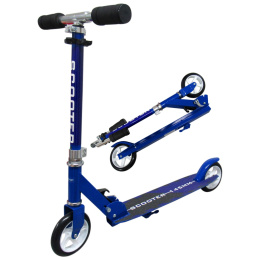 Skládací kovová dvoukolová koloběžka s výškově nastavitelnými řídítky a velmi pevnou konstrukcí do maximálního zatížení až 100 kg. Pro děti od 4 let až do 150 cm výšky.