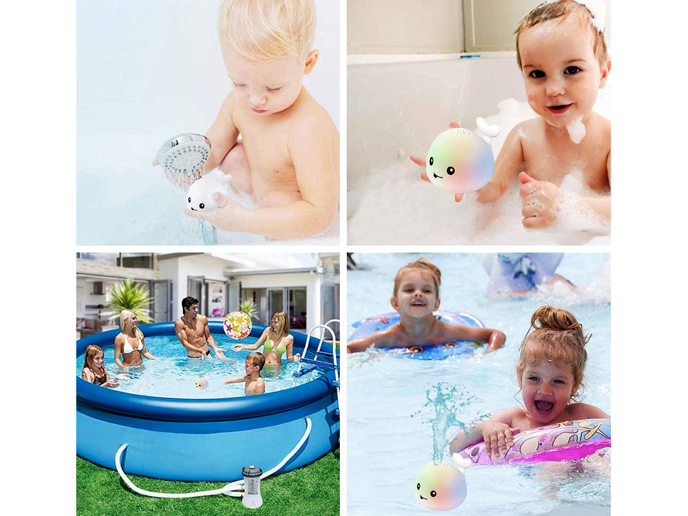 Velryba je hračka pro všechny děti, které se rády koupou, mají rády mořské živočichy a zároveň řídí vozidla. Velryba na jezdecké plošině splňuje všechna tato kritéria. Samotná velryba je určena pro hraní ve vodě při večerním koupání, hraní v bazénu nebo brouzdališti. Po ponoření do vody se hračka automaticky aktivuje a vytvoří mini fontánku doprovázenou barevnými měnícími se světly. Jakmile však dítě postaví velrybu na plošinu a přepne vypínač, pasažér začne jezdit v rytmu veselé hudby a barevných světel. Jezdecká plošina funguje pouze tehdy, když je na ní velryba umístěna.