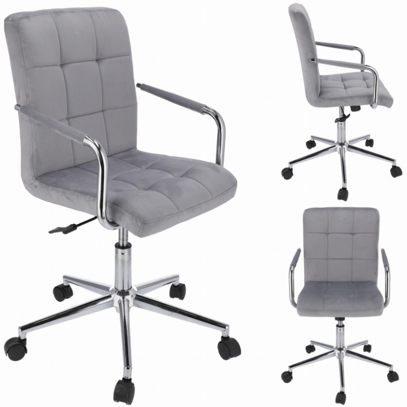 Židle má velurový čalouněný sedák s prošívanými čtverci. Pětihvězdičkový podstavec zakončený malými kolečky poskytuje skvělou stabilitu a chrání povrch před poškrábáním. Židle je vybavena pohonem, který umožňuje nastavit výšku sedadla podle potřeby. Křeslo je vybaveno systémem TILT, takže celé sedadlo je pohyblivé a může se naklápět dozadu.