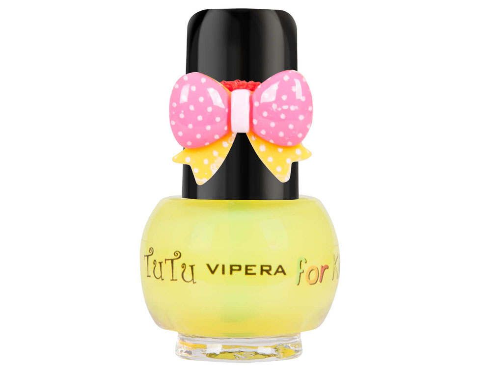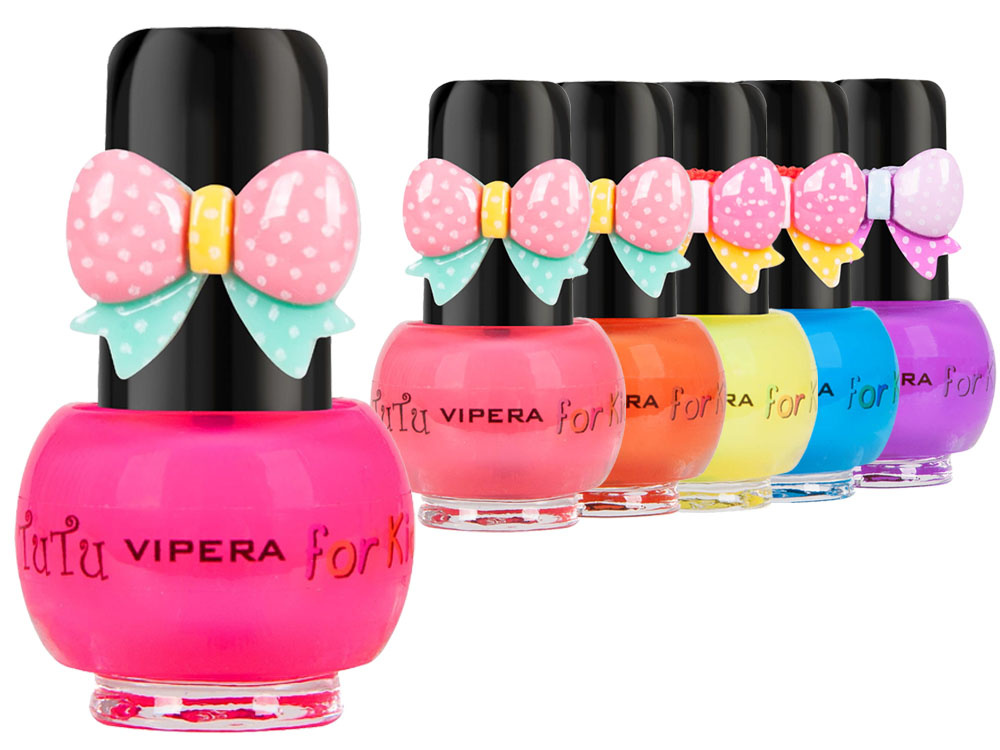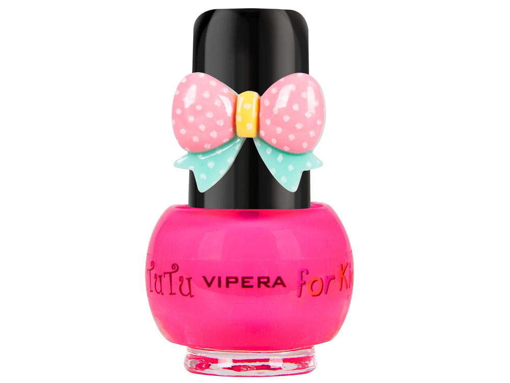 Laky na nehty Vipera Tu Tu je kosmetická řada vytvořená pro děti od 3 let. Laky jsou založeny na bezpečných recepturách na bázi vody. Neutrální pro jemnou nehtovou ploténku vašeho dítěte. Odstranitelný bez použití rozpouštědel, metodou peel-off (odlepuje se od nehtu jako samolepka). Šest barevných, šťavnatých, lesklých a lahodně jahodově vonících odstínů podnítí představivost a jistě se hodí ke každému vzhledu. Jako dárek pro dívku je ke každému laku přiložena roztomilá barevná gumička do vlasů.