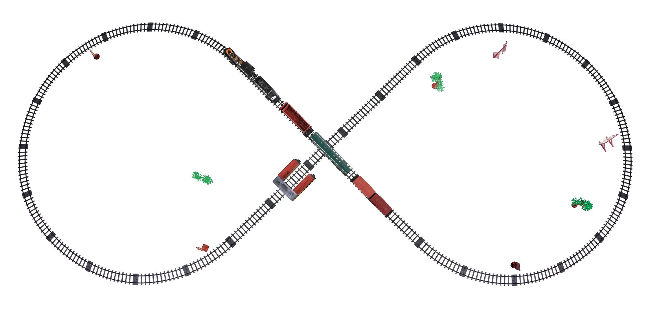 - lokomotiva s vagóny cca. 117 cm x 6 cm x 8,5 cm,