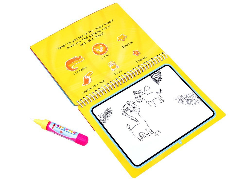 Úkolem celé hry je najít předměty ukryté na obrázku pouze pomocí fixu na vodní bázi. Natřete list papíru vodou a sledujte, jak získává barvu a objevuje se obrázek . Skvělá zábava pro všechny malé umělce, kteří rádi malují zvířata a dinosaury.