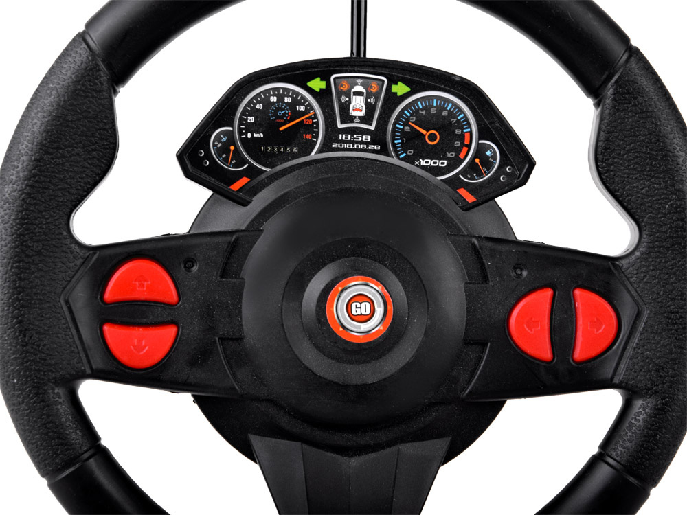 Dálkově ovládané sportovní auto s volantem a pedály vám poskytne hodiny neuvěřitelné zábavy. Vůz s futuristickou, uhlazenou siluetou jistě potěší každého fanouška čtyř kol. Jako pravý sportovní vůz má nízké zavěšení, spoiler a osvětlení (vpředu). Řidič má pomocí dálkového ovládání ve tvaru volantu plnou kontrolu nad vozidlem. Dálkové ovládání v podobě volantu má velmi intuitivní ovládání a pohodlně padne do ruky. Jízdu vozu lze ovládat také pedály připevněnými k volantu, které slouží k jízdě vpřed a vzad. Celou sadu doplňují semafory, které dělají zábavu ještě zajímavější.