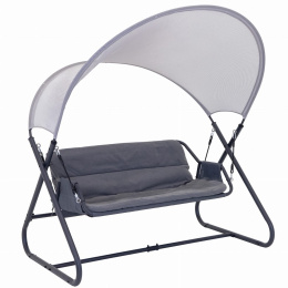 Konstrukce pro tři osoby: Ideální pro relaxaci jak o samotě, tak s přáteli. Poskytuje prostor a pohodlí pro tři osoby současně. Rám ve formě trojúhelníkové lyžiny: Práškově lakovaný, zajišťuje trvalou odolnost a stabilitu. Odolná proti korozi a poškození způsobenému mírnými vlivy. Materiál: Ocel, síťovina mesh, tkanina, které zajišťují pevnost a odolnost vůči povětrnostním podmínkám Tloušťka polštáře: 4 cm, zajišťující dodatečný komfort při sezení