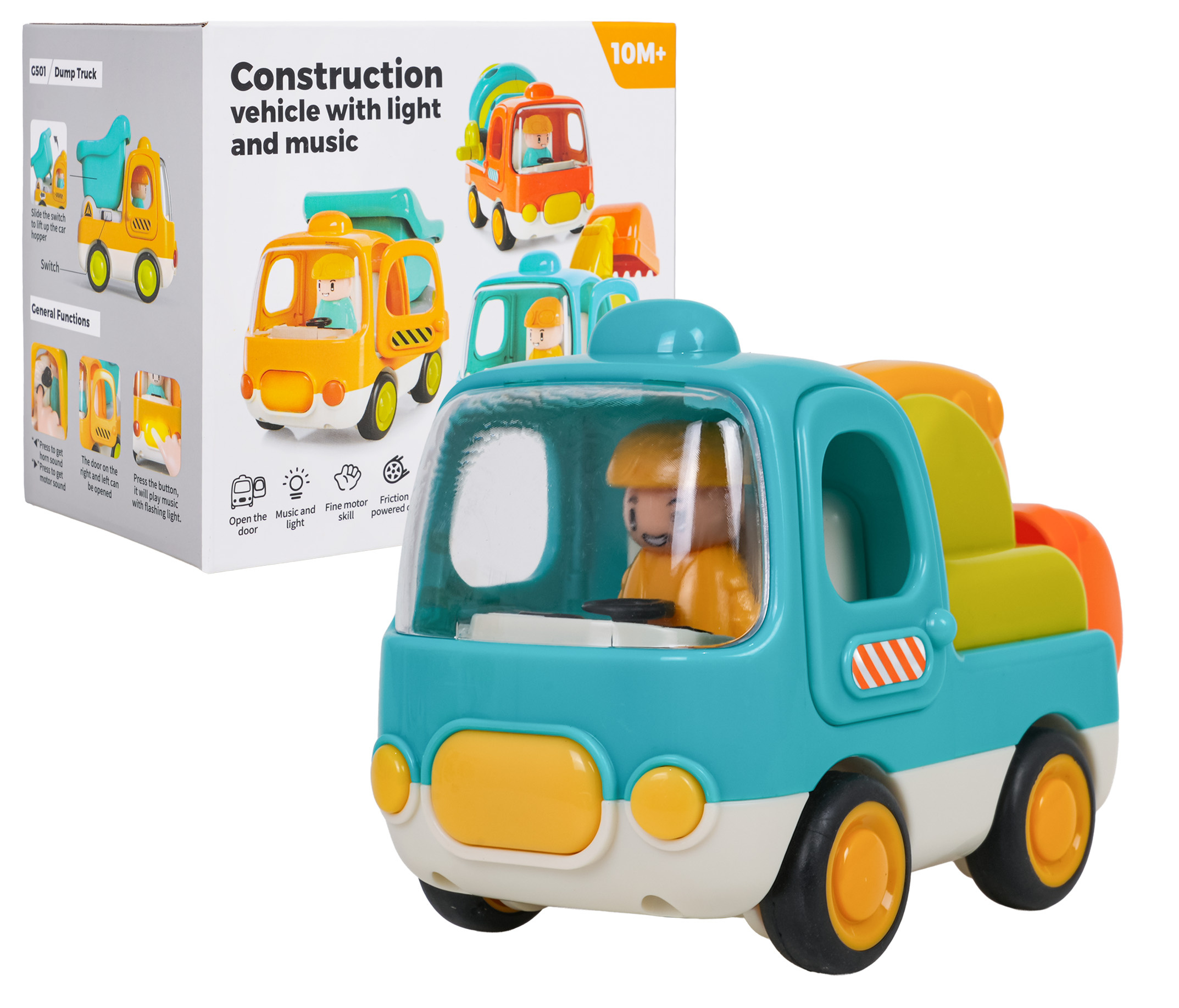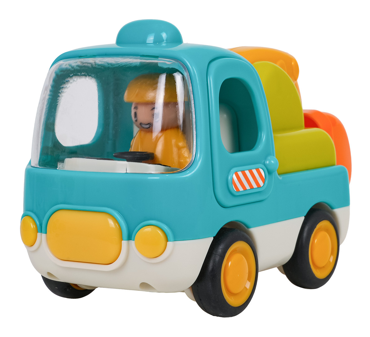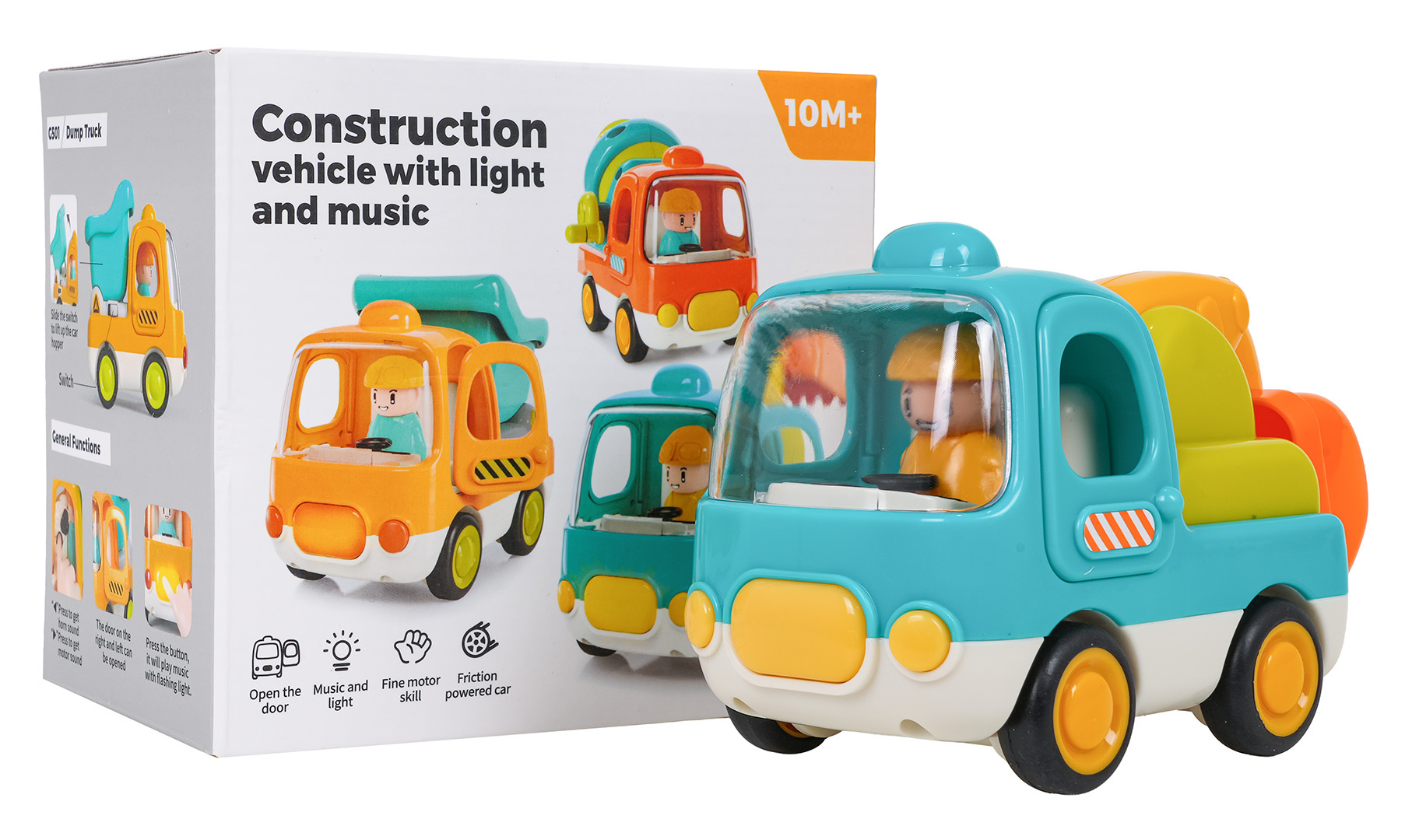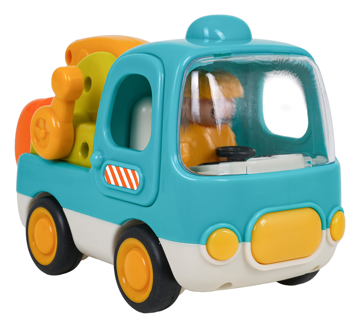 - zvukové efekty: veselé melodie (tlačítko na přední straně vozidla), zvuk startování vozidla a klakson (tlačítka uvnitř kabiny),