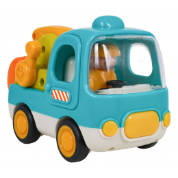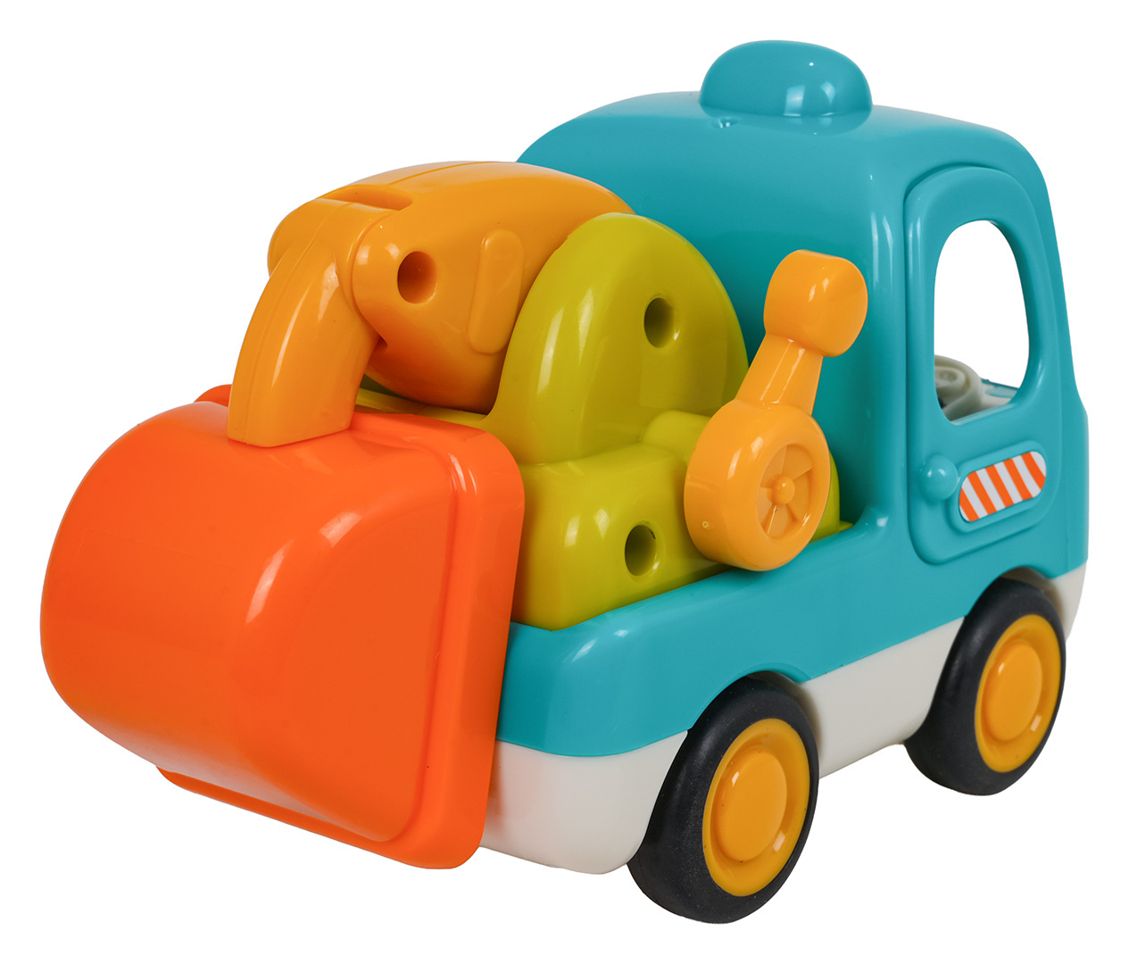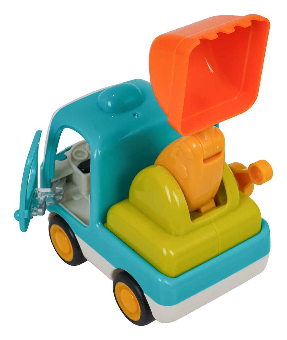 Interaktivní bagr s funkcí zvuku a světla pro děti od desátého měsíce života. Hračka je vyrobena z odolného a bezpečného plastu, nemá ostré hrany a vydrží i tu nejenergičtější hru. Živé barvy přitahují pozornost dítěte a povzbuzují ke hře. Zvukové a světelné efekty stimulují smysly dítěte a dodávají hře na realističnosti. Kolečka se snadno pohybují po podkladu a dveře a lžíce bagru jsou pohyblivé. Hračka je napájena bateriemi typu 3 x AG13 (v balení).