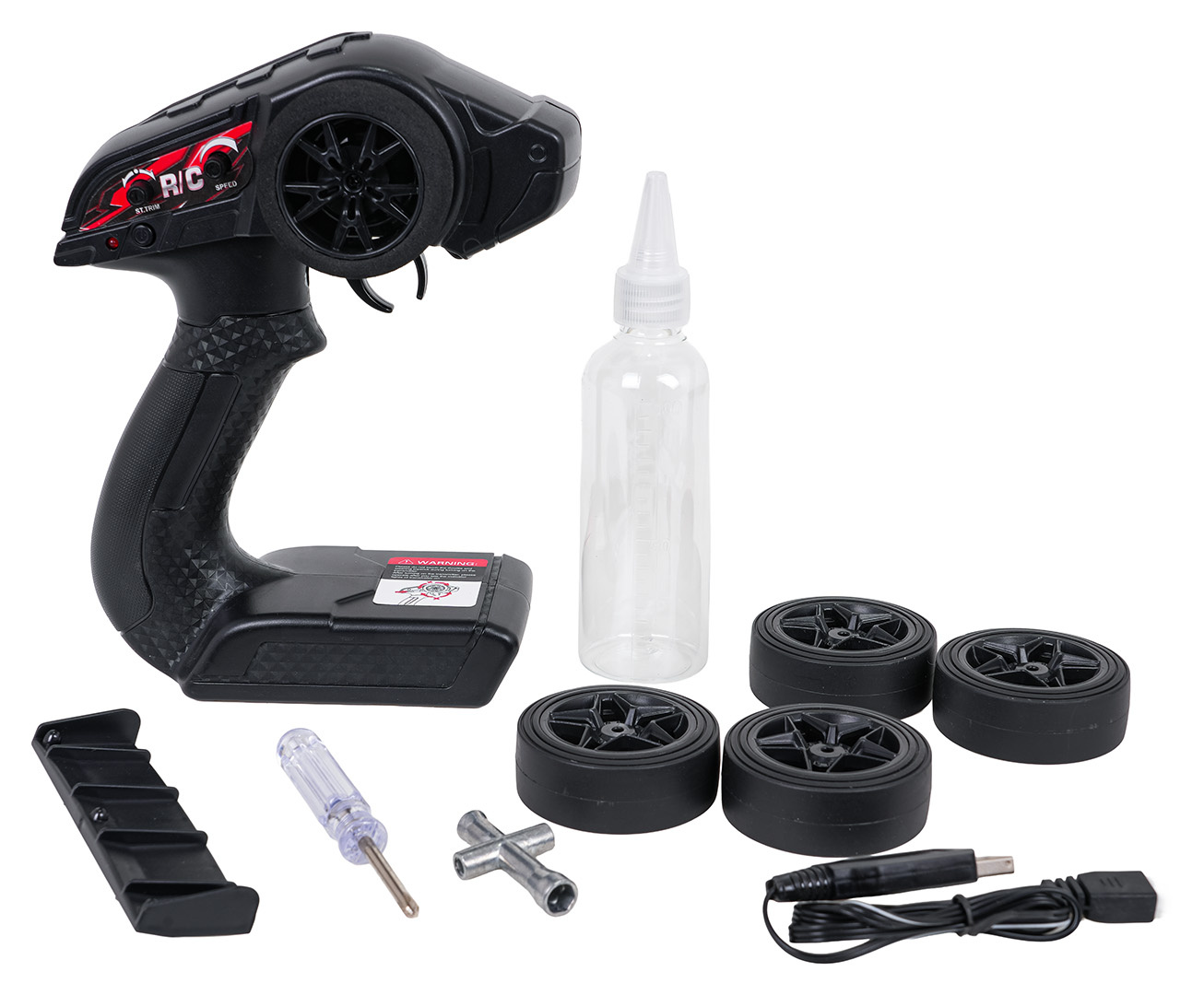 Dálkově ovládané vozidlo pro drift, vyrobené v měřítku 1:16, pro děti od čtrnácti let. Karoserie vozidla je vyrobena z odolného plastu, aby zvládla i ten nejbláznivější drift. Hladká kola umožňují vozidlu bez námahy vjíždět do ostrých zatáček s kontrolovaným smykem. V balení se nacházejí také další 4 pneumatiky s běhounem, pro standardní závody. Vozidlo jezdí všemi směry: dopředu, dozadu, zatáčí doleva a doprava a driftuje. Model je napájen akumulátorem 7,4V (v sadě), ovladač bateriemi typu 3 x AA 1,5V (nejsou v sadě).