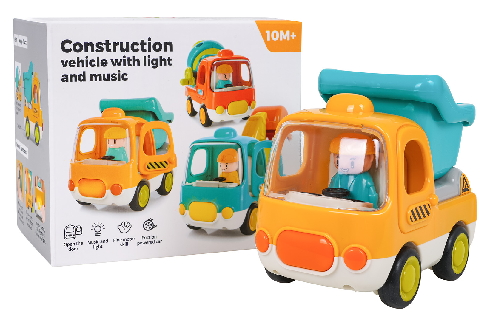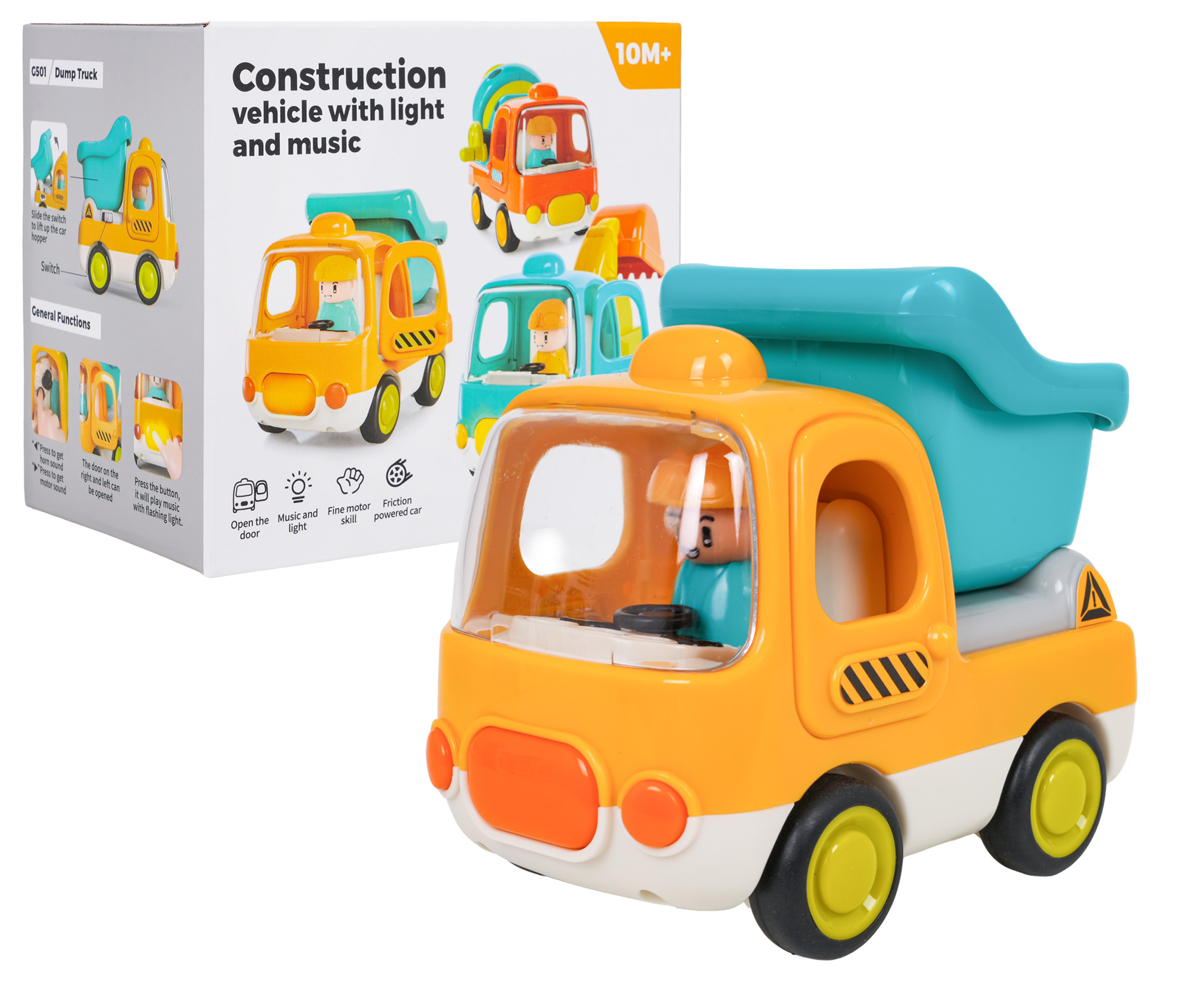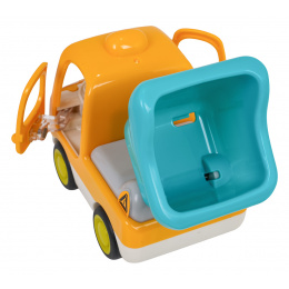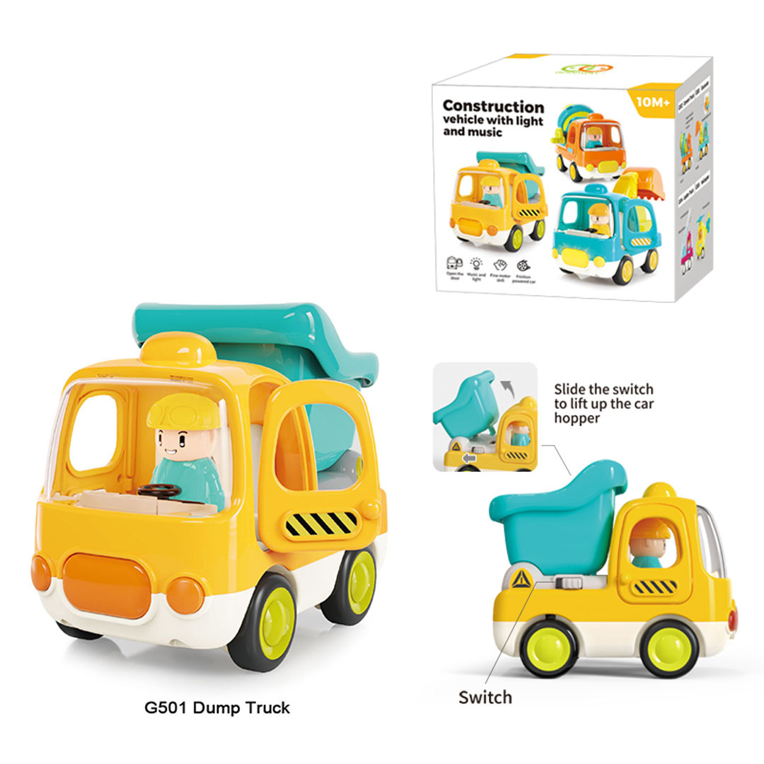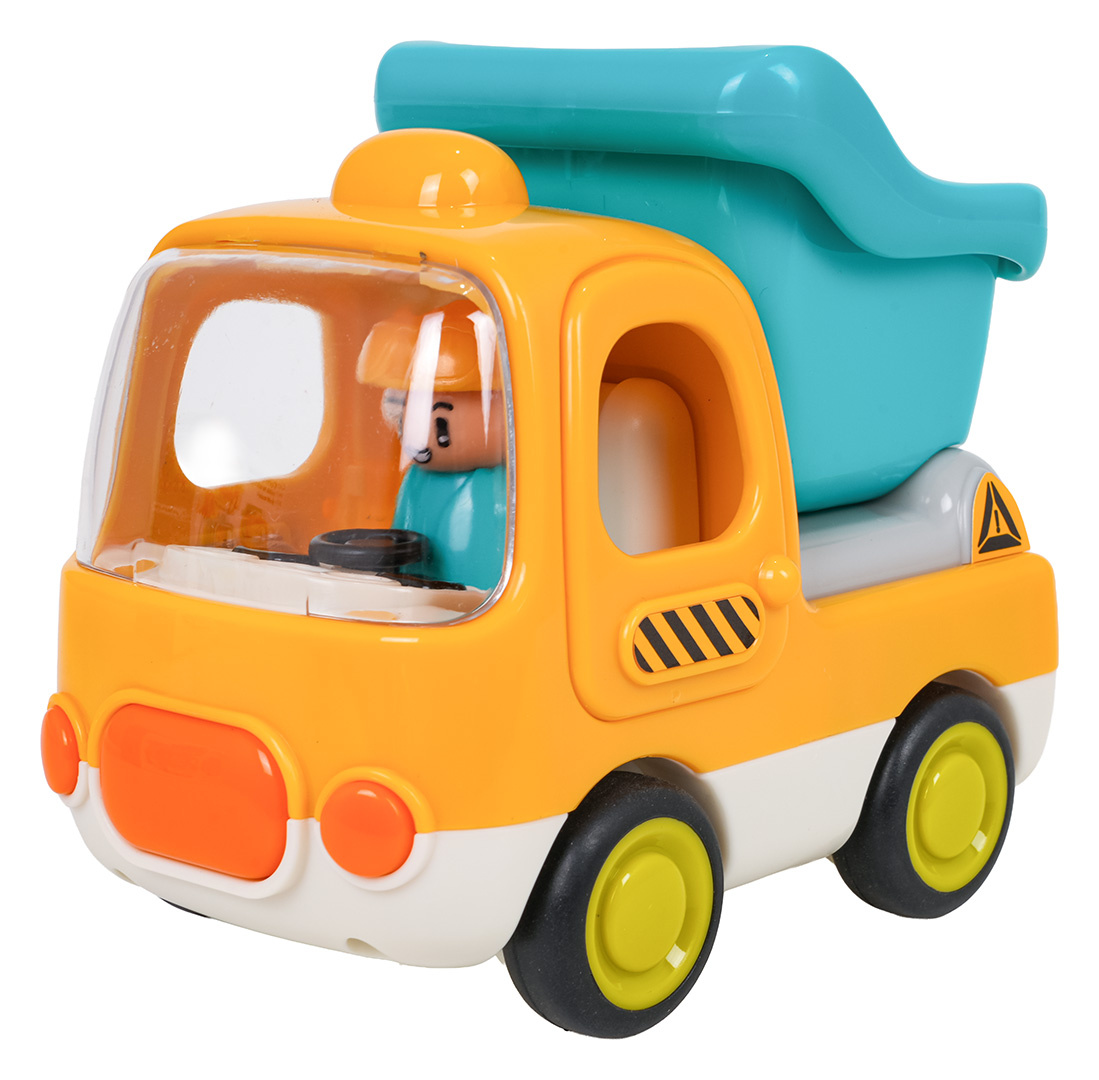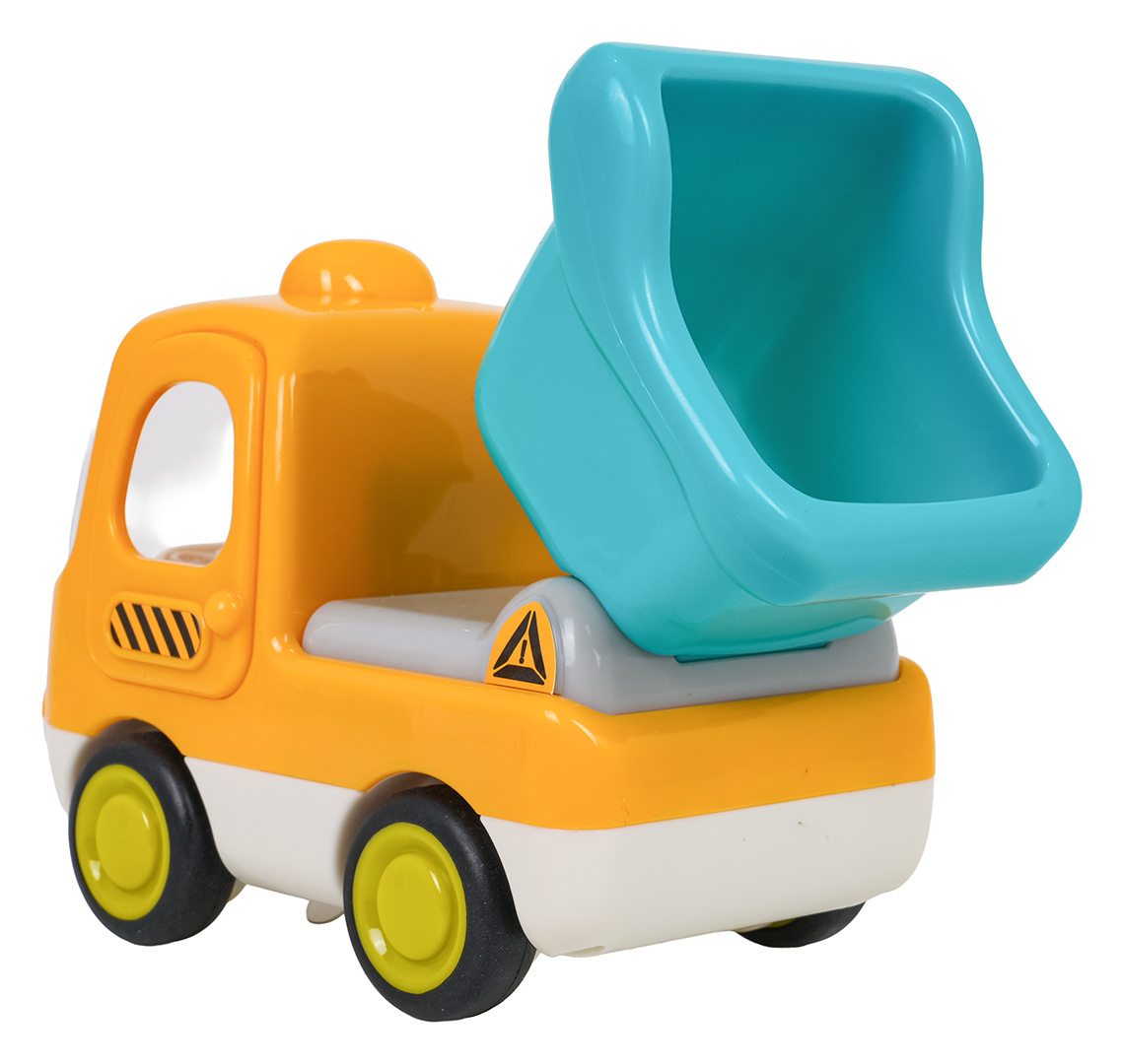 Interaktivní sklápěčka s funkcí zvuku a světla pro děti od desátého měsíce života. Hračka je vyrobena z odolného a bezpečného plastu, nemá ostré hrany a vydrží i tu nejenergičtější hru. Živé barvy přitahují pozornost dítěte a povzbuzují ke hře. Zvukové a světelné efekty stimulují smysly dítěte a dodávají hře na realističnosti. Kolečka se snadno pohybují po podkladu a dveře a přívěs vozidla jsou pohyblivé. Hračka je napájena bateriemi typu 3 x AG13 (v balení).