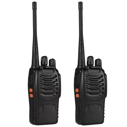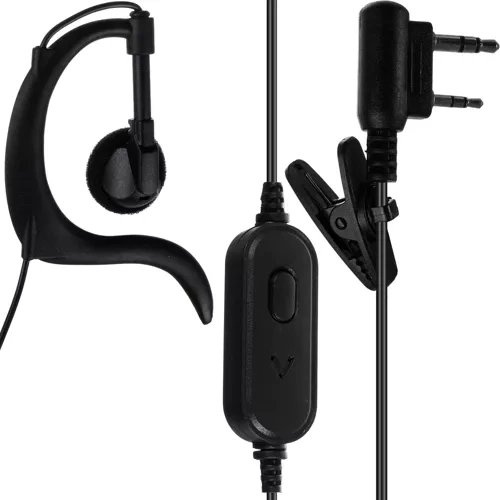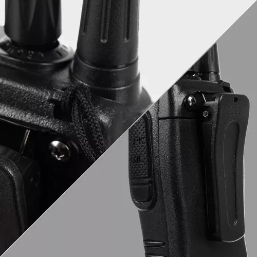 • Sluchátka v sadě – součástí balení jsou 2 headsety, díky nimž lze vysílačku schovat do kapsy a komunikovat jen pomocí tlačítka na kabelu. Možné je jak vysílání, tak příjem. K dispozici je také spona na opasek.