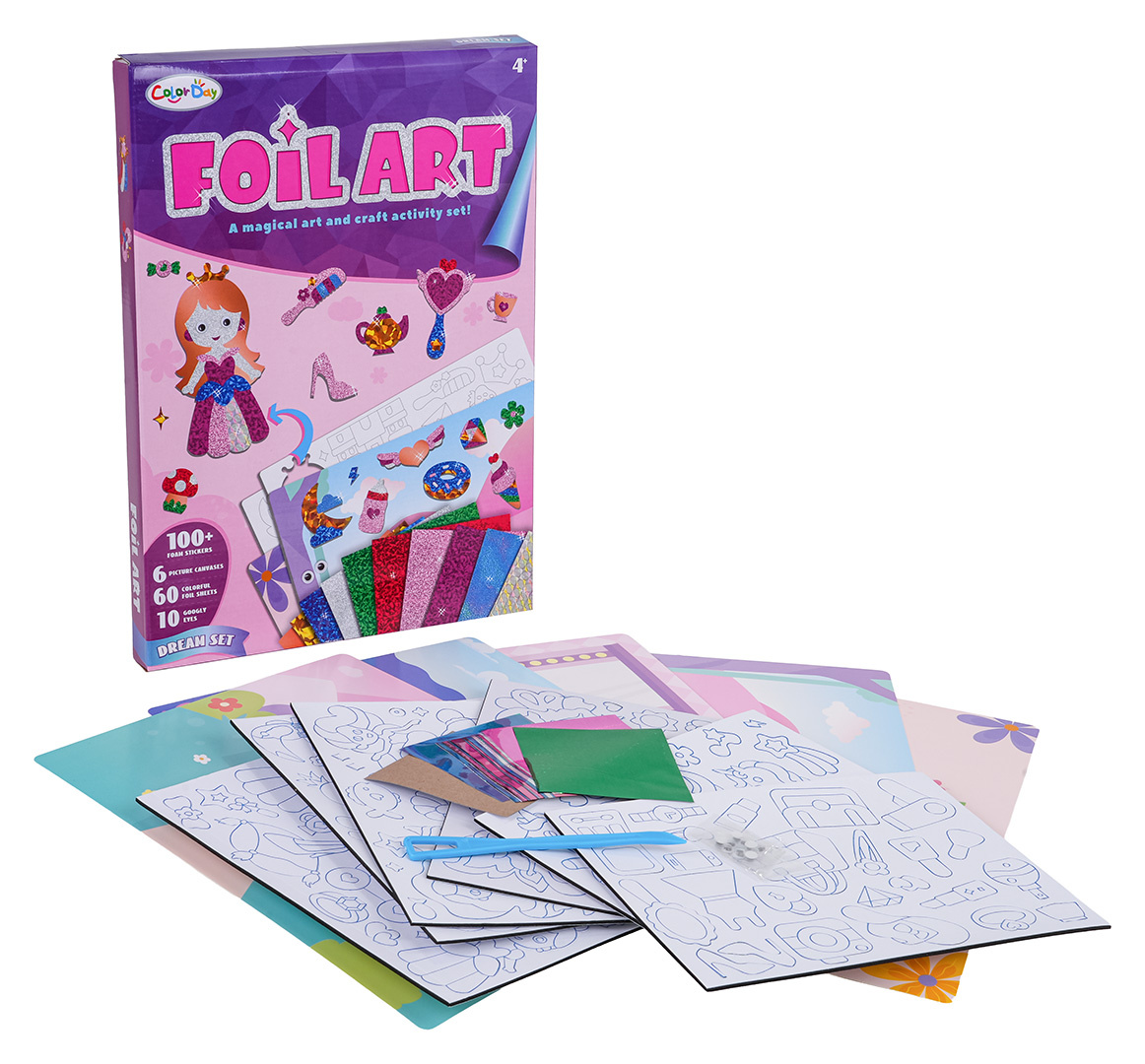 Bohatě vybavená sada pro vytváření barevných obrázků pro děti od čtyř let. Sada se skládá z pěnových nálepek, šablon s pozadím, třpytivého papíru a špachtle pro snadnější odstranění papíru z pěnových nálepek. Úkolem dítěte je vytvořit kreativní obrázek na různá témata.