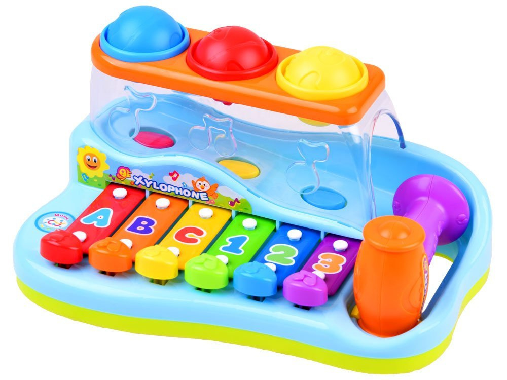 Při hře může dítě udeřit kladívkem do kláves nebo prorazit otvory kuličky - pak se ozve zvuk cimbálu. Při úderu do koulí se ozývají další tóny. Na klávesách jsou namalována čísla a písmena, což dítěti dále pomáhá zapamatovat si pořadí úderů.
