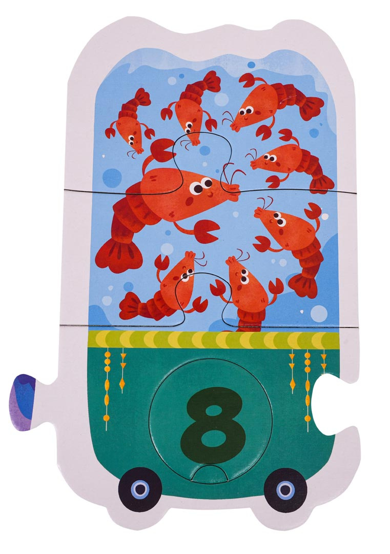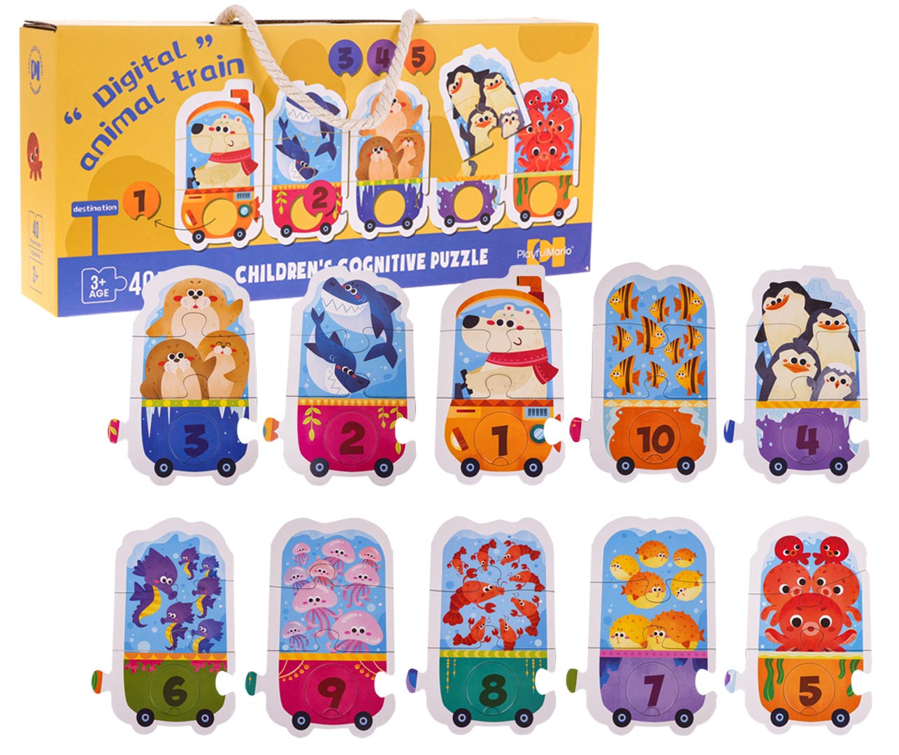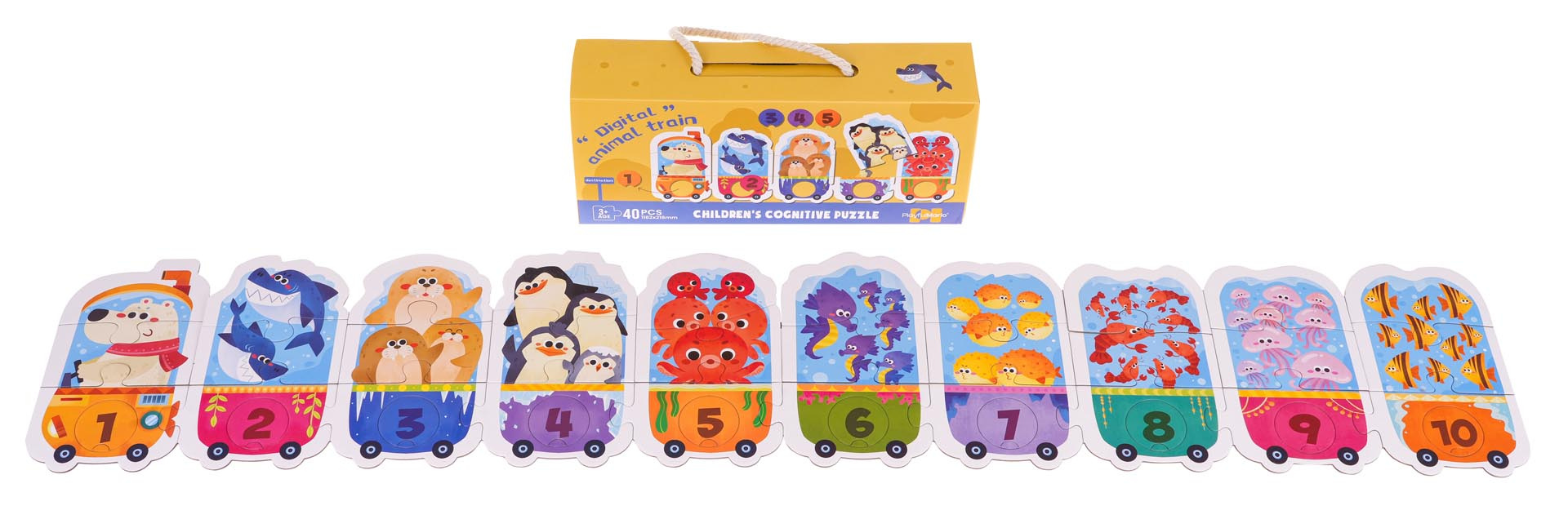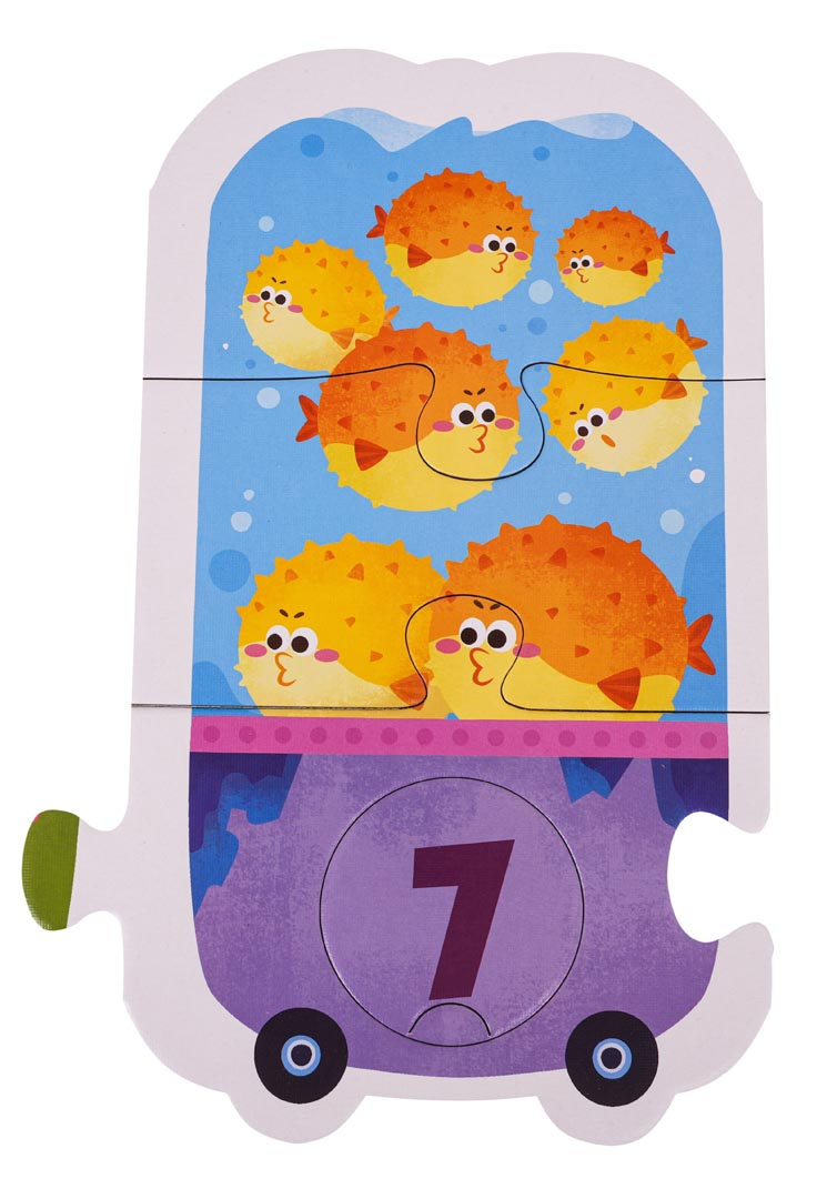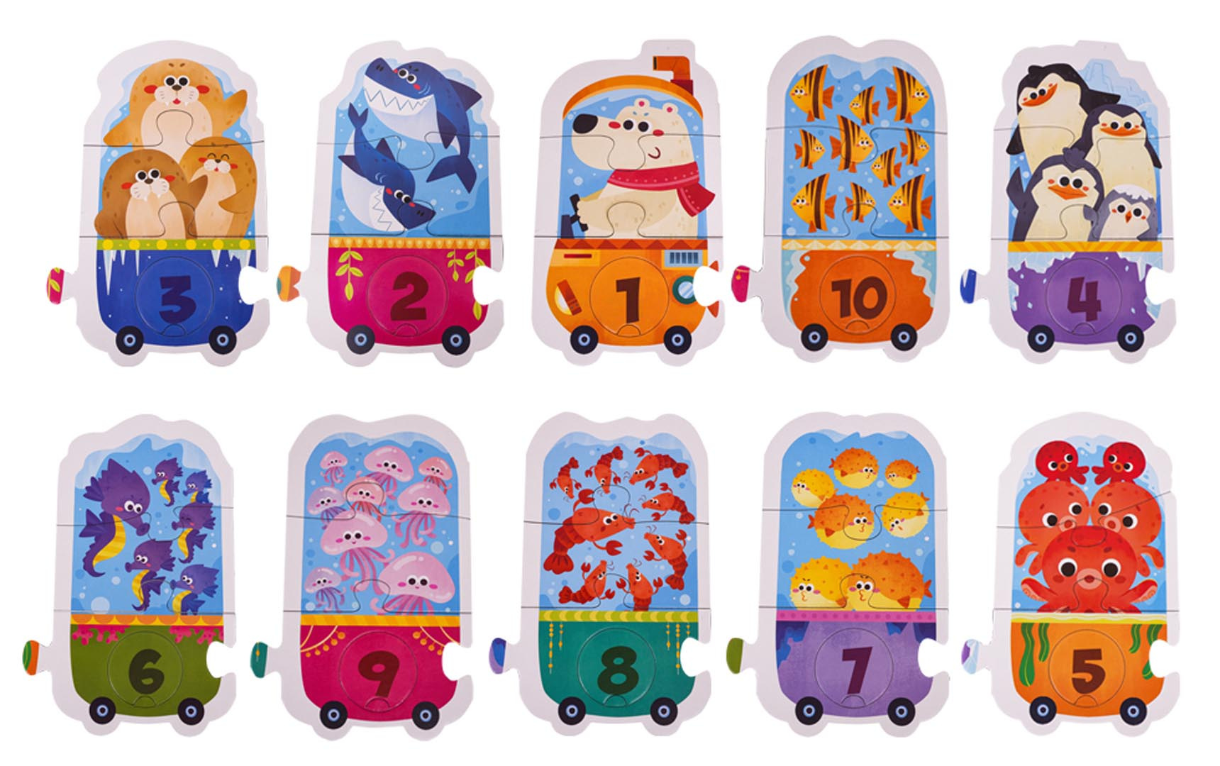 Každý vagónek má prostor pro přiřazení čísla a kartičku s odpovídajícím počtem zvířat , díky čemuž je učení počítání jednoduché a zábavné. Zářivé barvy a atraktivní ilustrace dále podněcují zvědavost a povzbuzují ke hře.