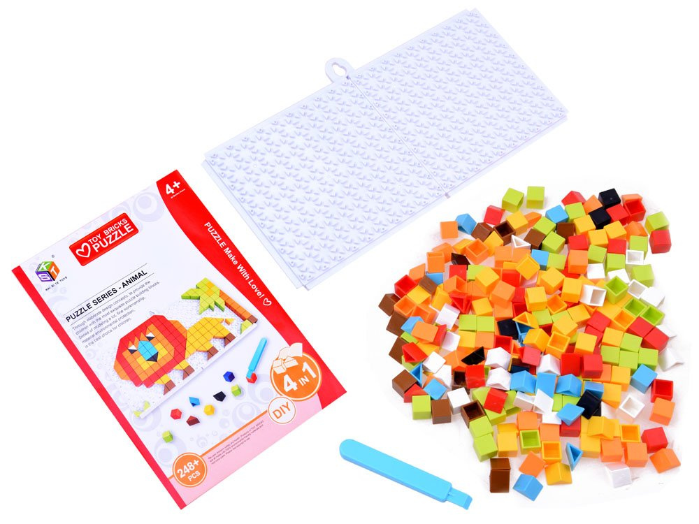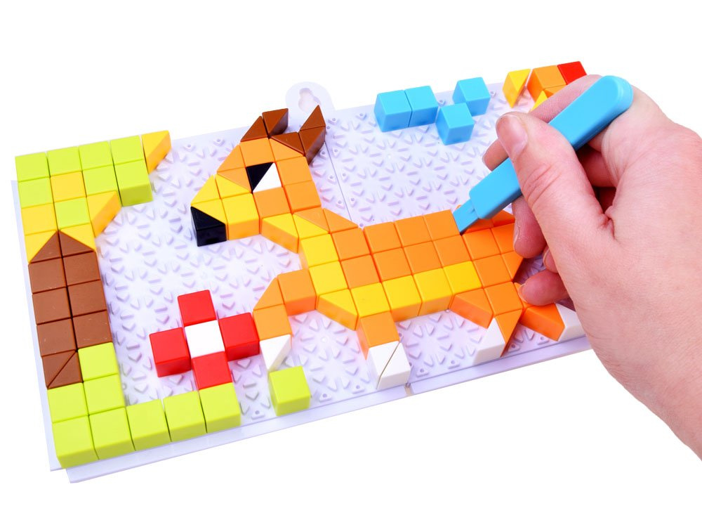 Kreativní sada pro vytvoření barevného obrázku vlastníma rukama. Sada se skládá z plastových bloků, které se uspořádají na desce.Čtverečky je třeba přitisknout na hrací plochu, aby vznikl obrázek. Můžete reprodukovat obrázky z přiložené brožury nebo vymýšlet vlastní kompozice. Hračka skvěle rozvíjí dětskou představivost, koncentraci a manuální zručnost. Hračka pro kutily určená pro děti, které se zajímají o svět.