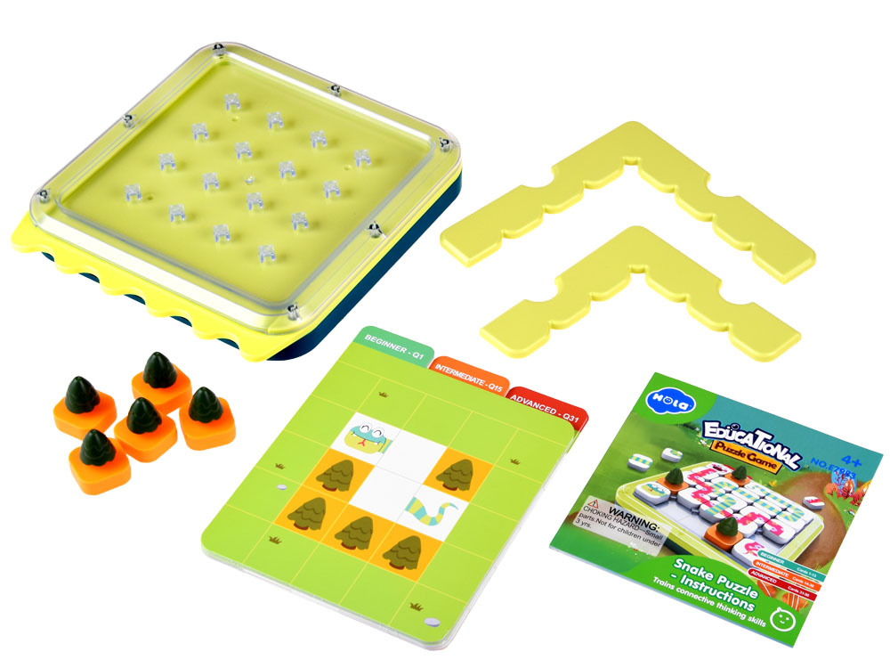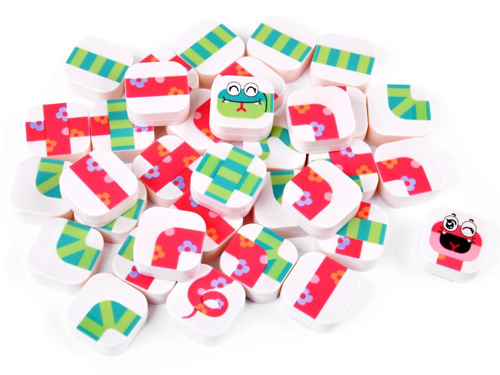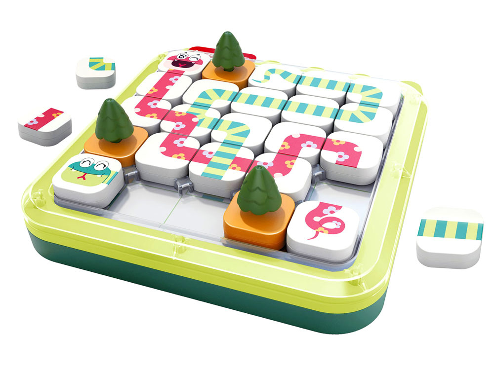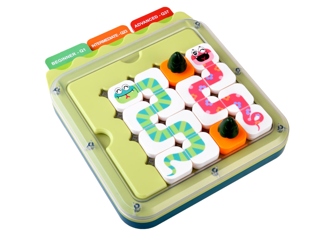 Naším úkolem je spojit hlavu a ocas hada do jednoho celku. Na výběr jsou kostky s rovnými úseky, zatočené kostky a také kostky s protínajícími se úseky hadic. Kostky jsou oboustranné se zeleným a růžovým hadem.