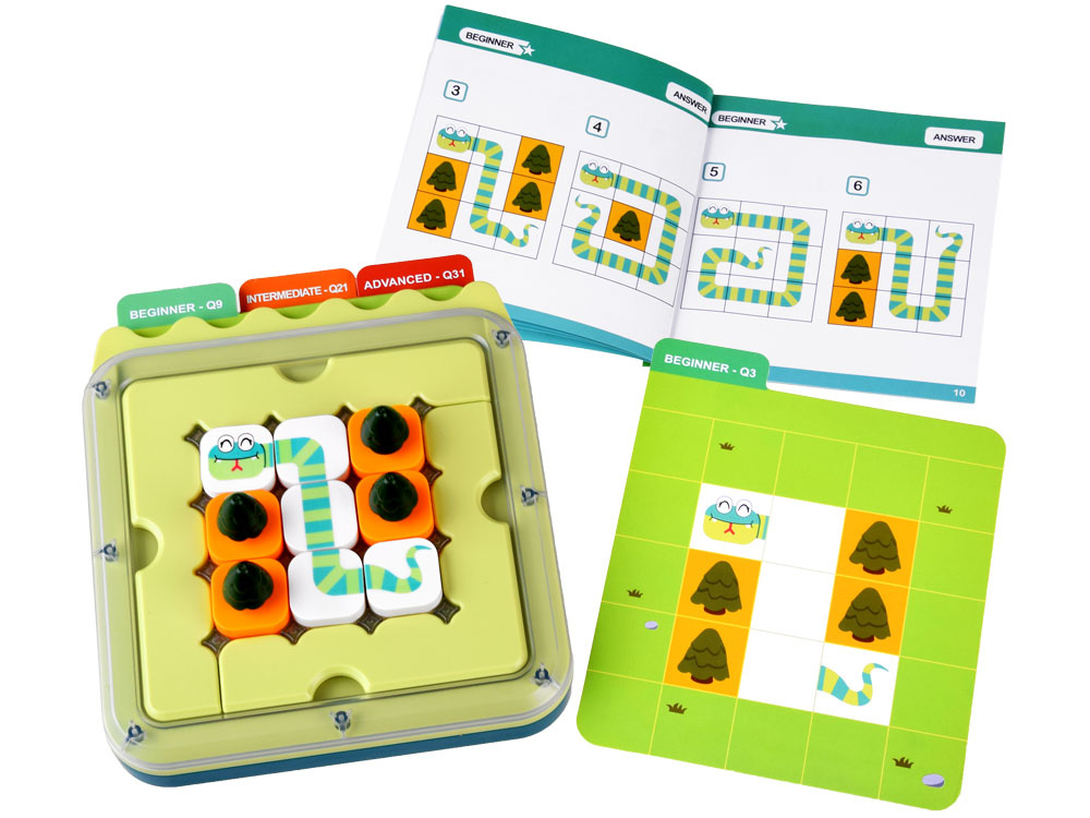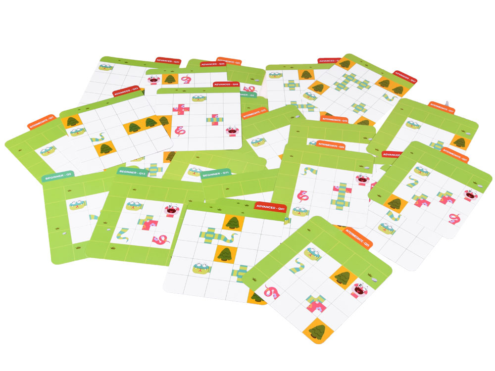Na začátku se vybere karta s úkolem. Můžete si vybrat ze 3 úrovní obtížnosti: snadná (zelená), střední (oranžová) a obtížná (červená). Vybraná karta se položí před hrací plochu a její rozložení se promítne na hrací plochu. V lehké a středně těžké úrovni zmenšíme hrací pole uspořádáním zastávek. Dále rozebereme stromy, hlavu a ocas hada a v nejsložitější verzi i další části hada, které bude třeba spojit.