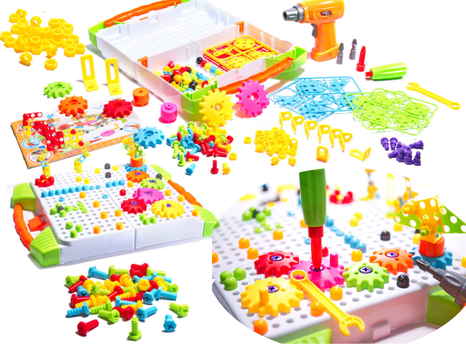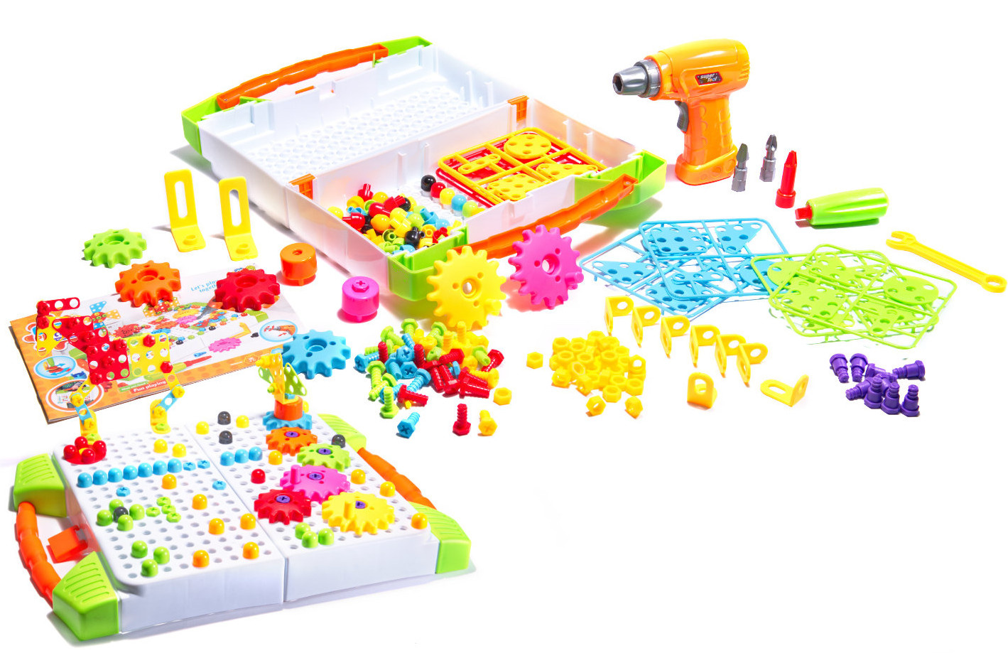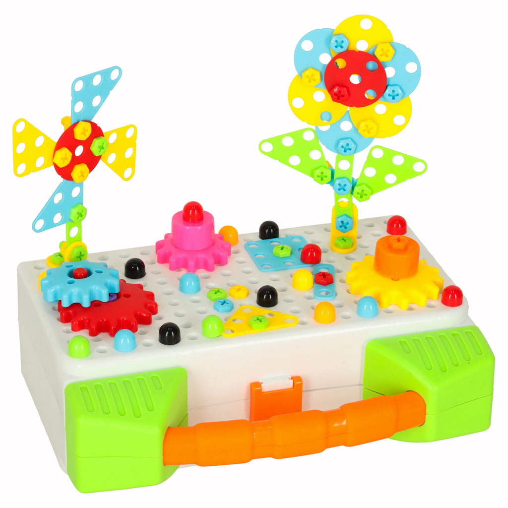 Výuková sada v kufříku se šroubovákem. Jedná se o přišroubování různých bloků do desky a vytvoření obrazu. Hra rozvíjí kreativitu. Soubor se skládá ze 181 prvků. Napájení pomocí 2x AA 1,5V baterií (nejsou součástí dodávky). Rozměry: 28,5x21x9 cm.Celý popis