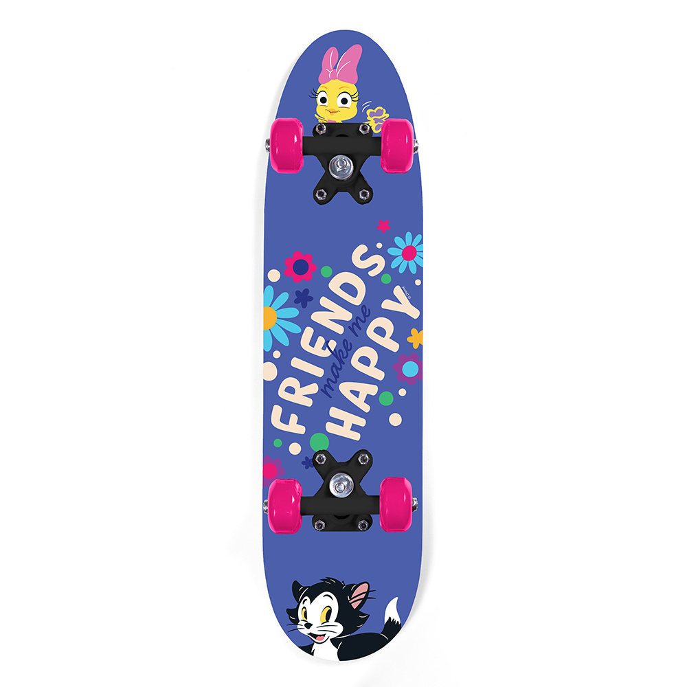Dřevěný skateboard ozdobený módními vzory s licencí Disney, Marvel a Star Wars. Je ideální pro použití na chodnících, náměstích a městských uličkách. Deska je vyrobena z odolného dřeva a má protiskluzový povrch, který zajišťuje trakci a zvyšuje bezpečnost. Díky malé velikosti a hmotnosti je snadné jej přepravovat.